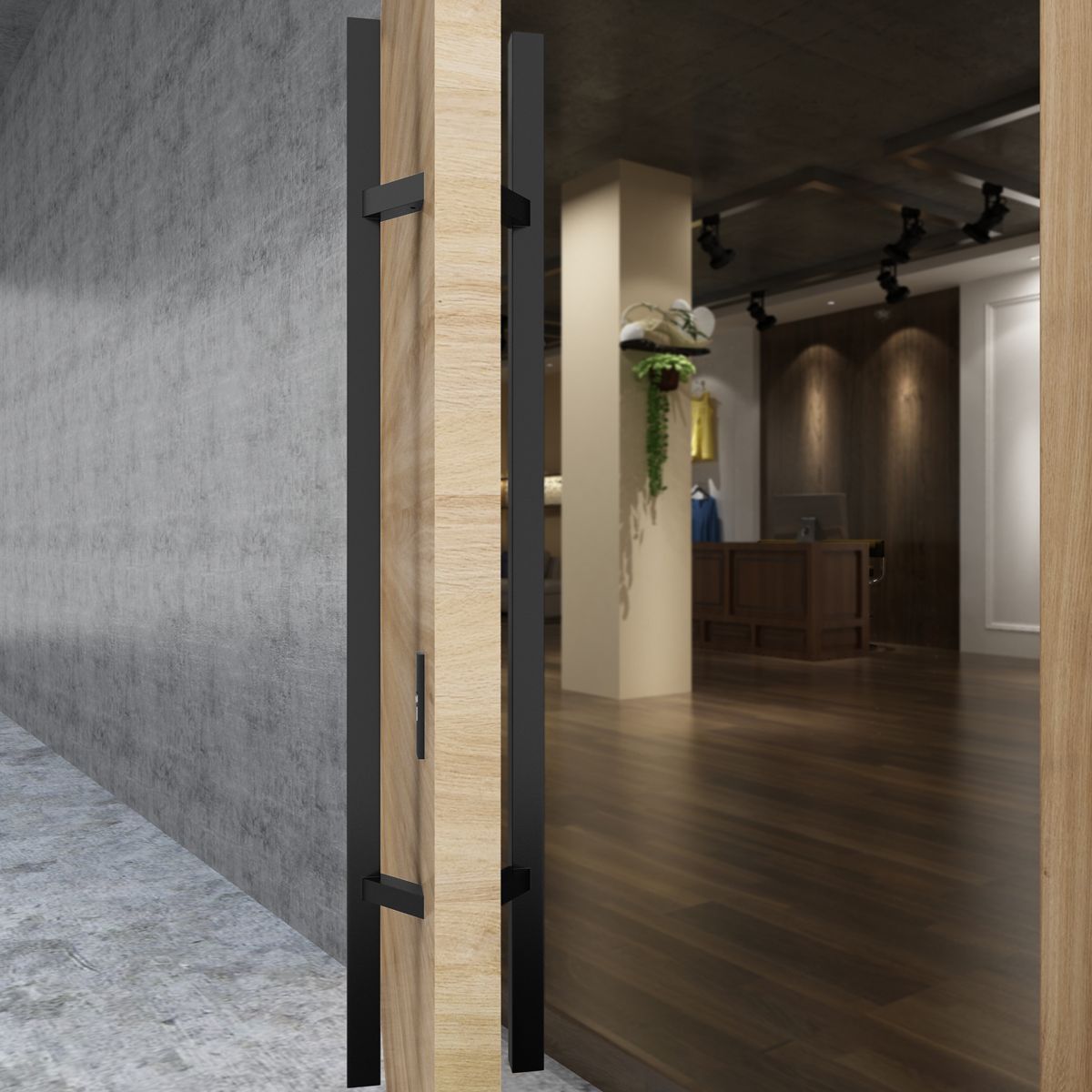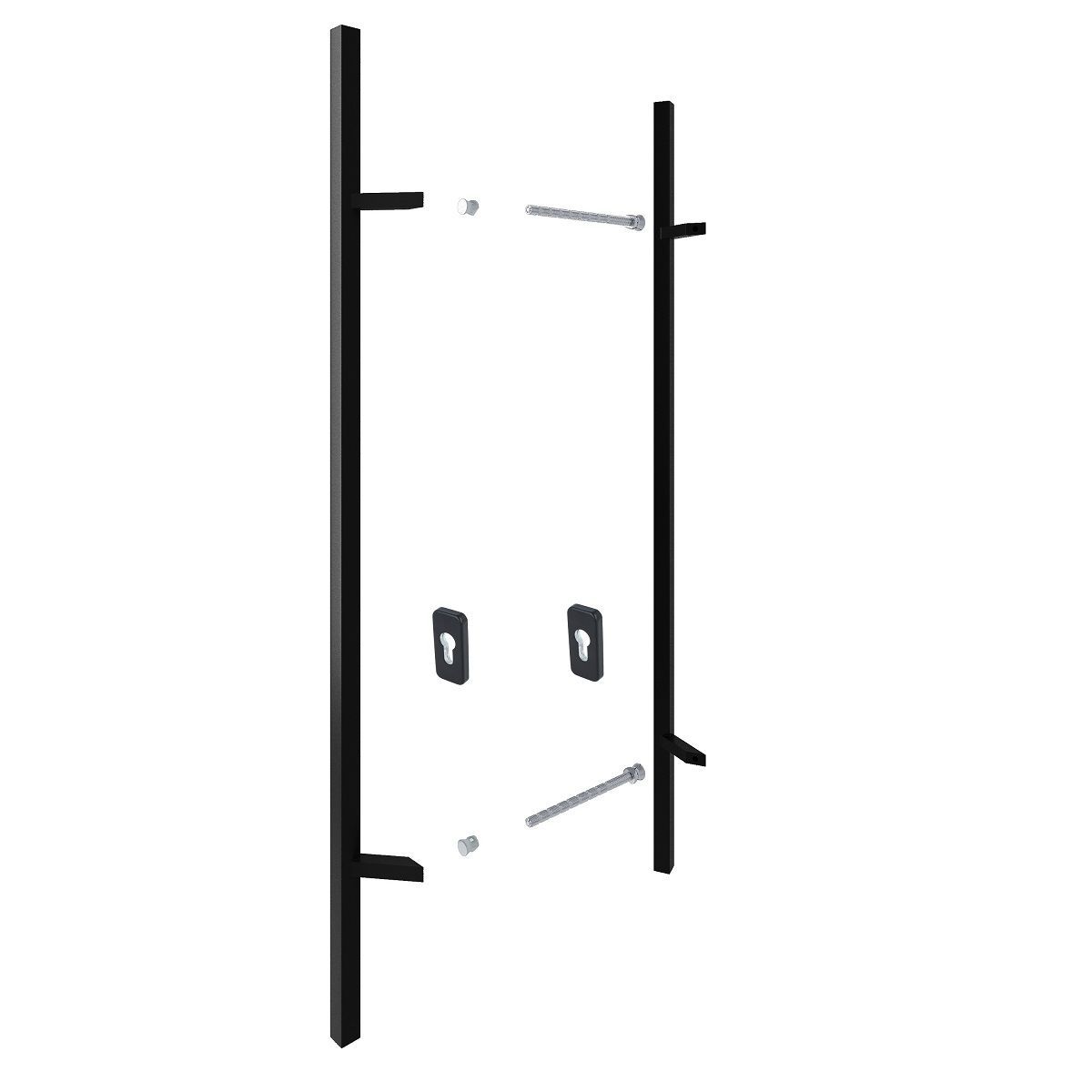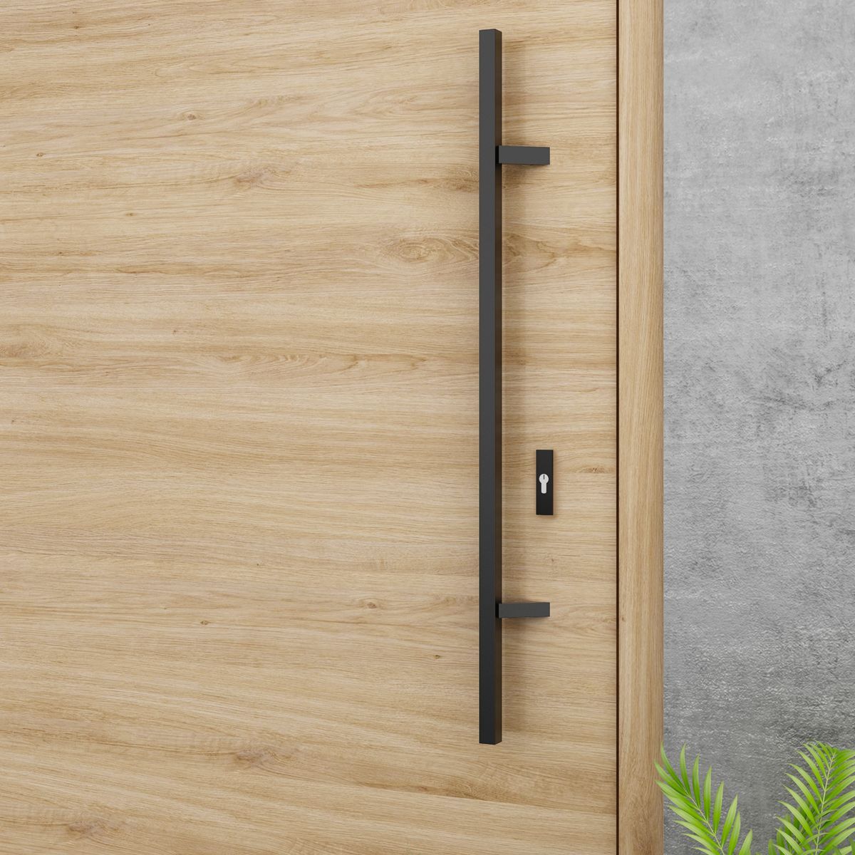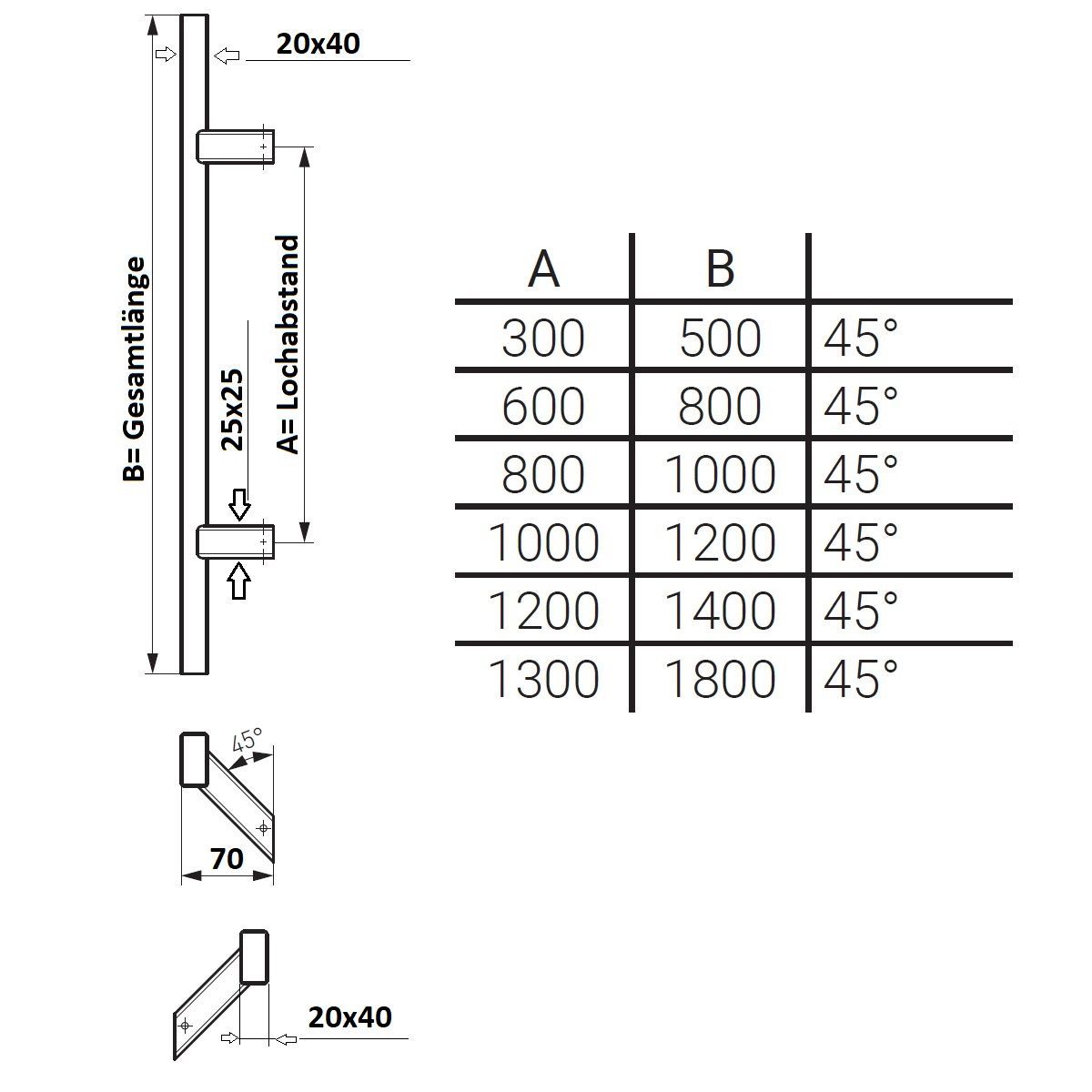 Stangengriff Edelstahl Stoßgriff Schwarz RAL9005 gekröpfter Sockel Haustürgriff
