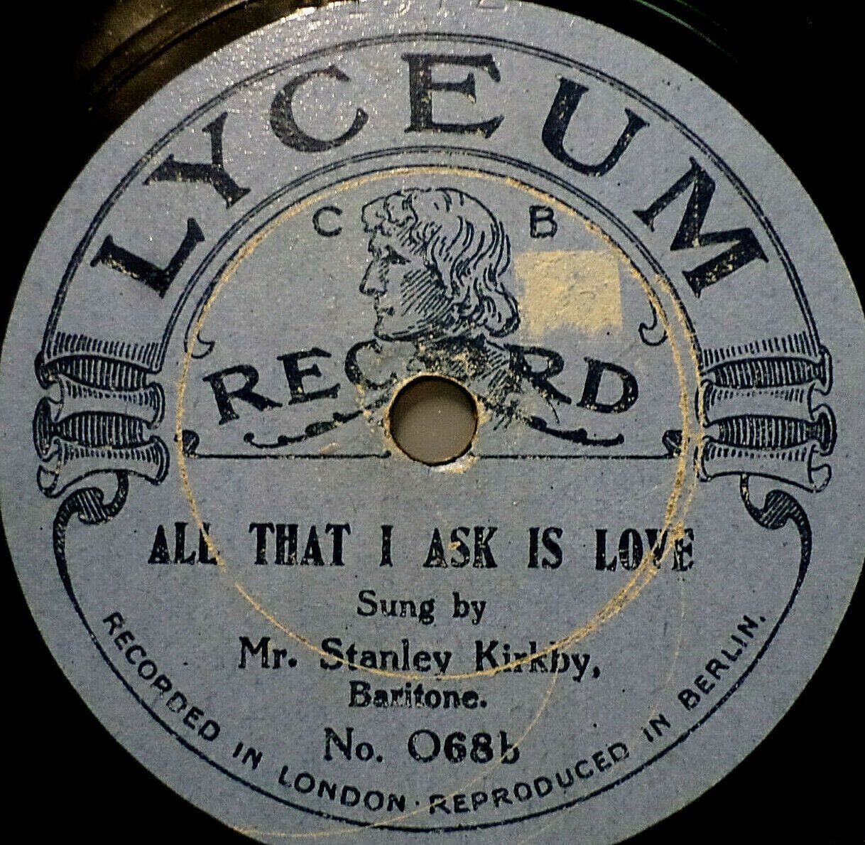 Stanley KIRKBY "All That I Ask Is Love / The Old Rustic Bridge" Lyceum 78rpm 1912