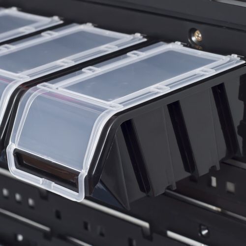 Stapelboxen Set 4 x Wandregal Lagersystem + 40 Boxen schwarz