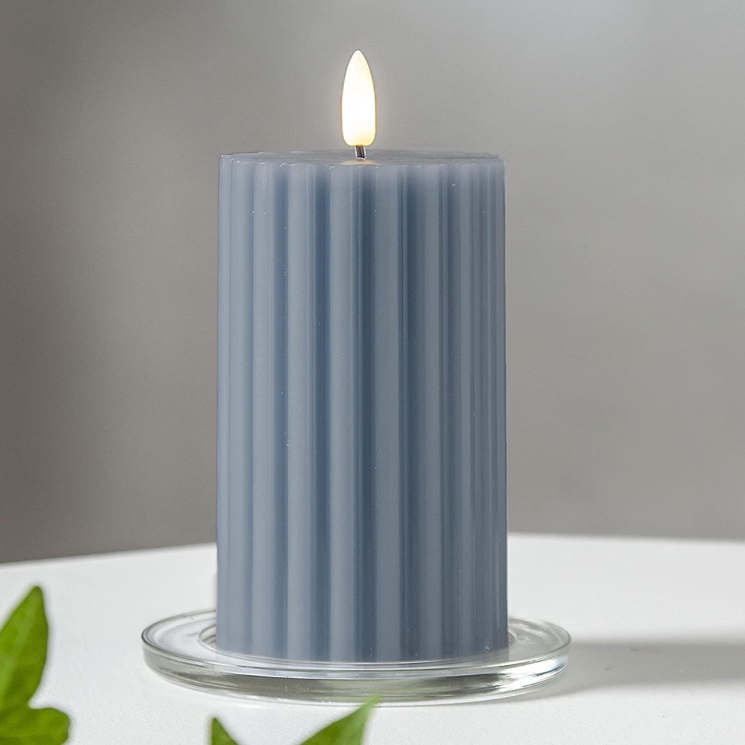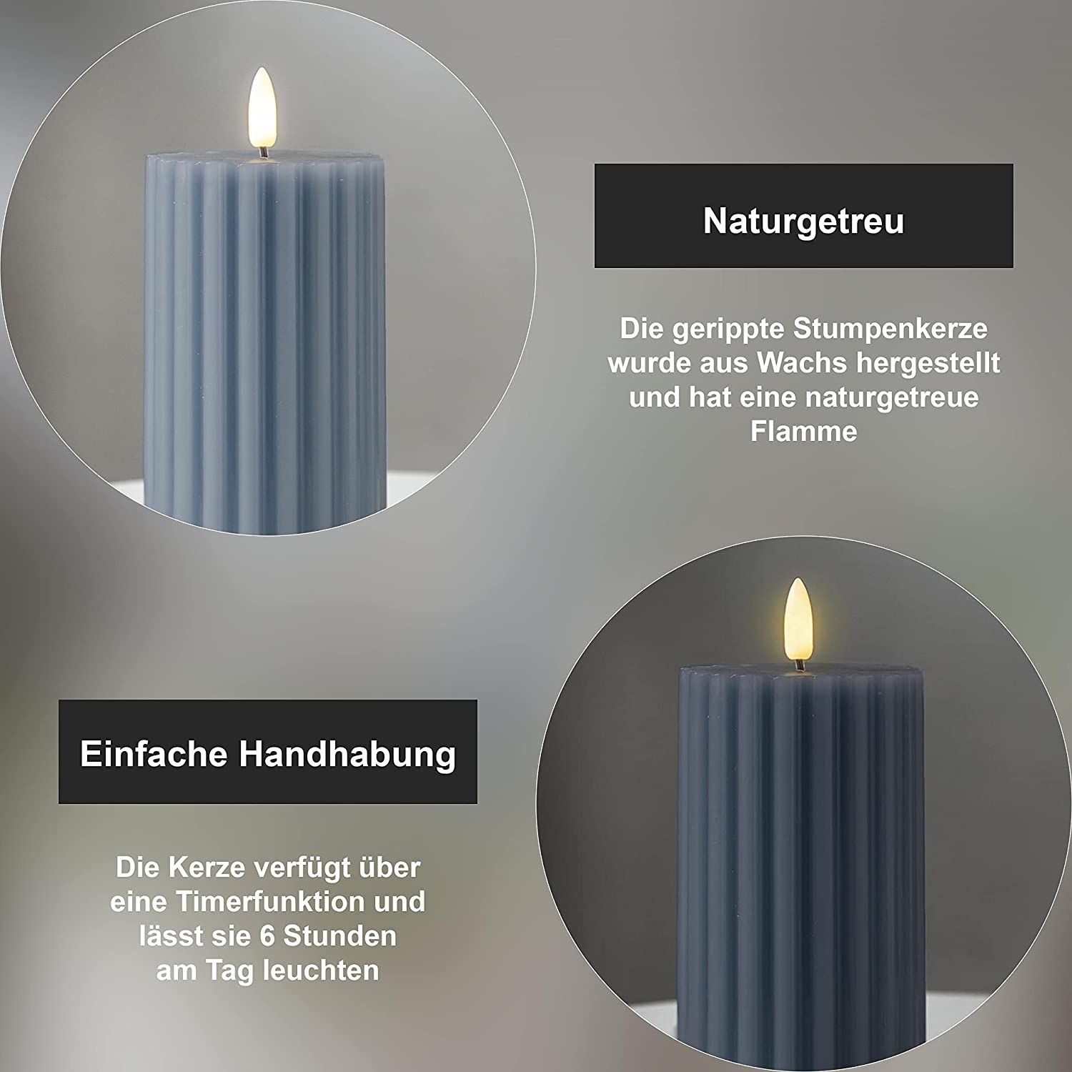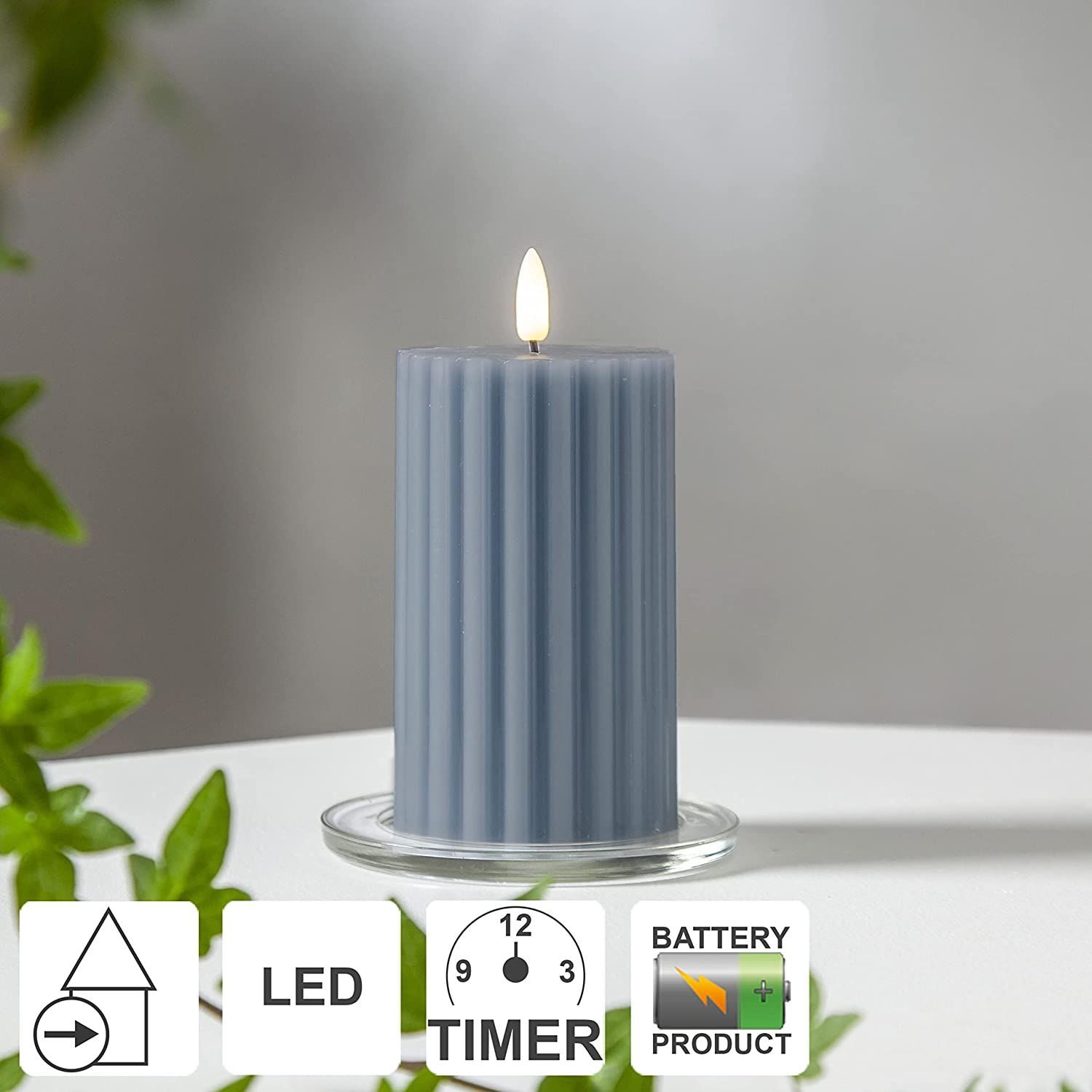 Star Trading LED Blockkerze "Flamme Stripe" Blau aus Wachs