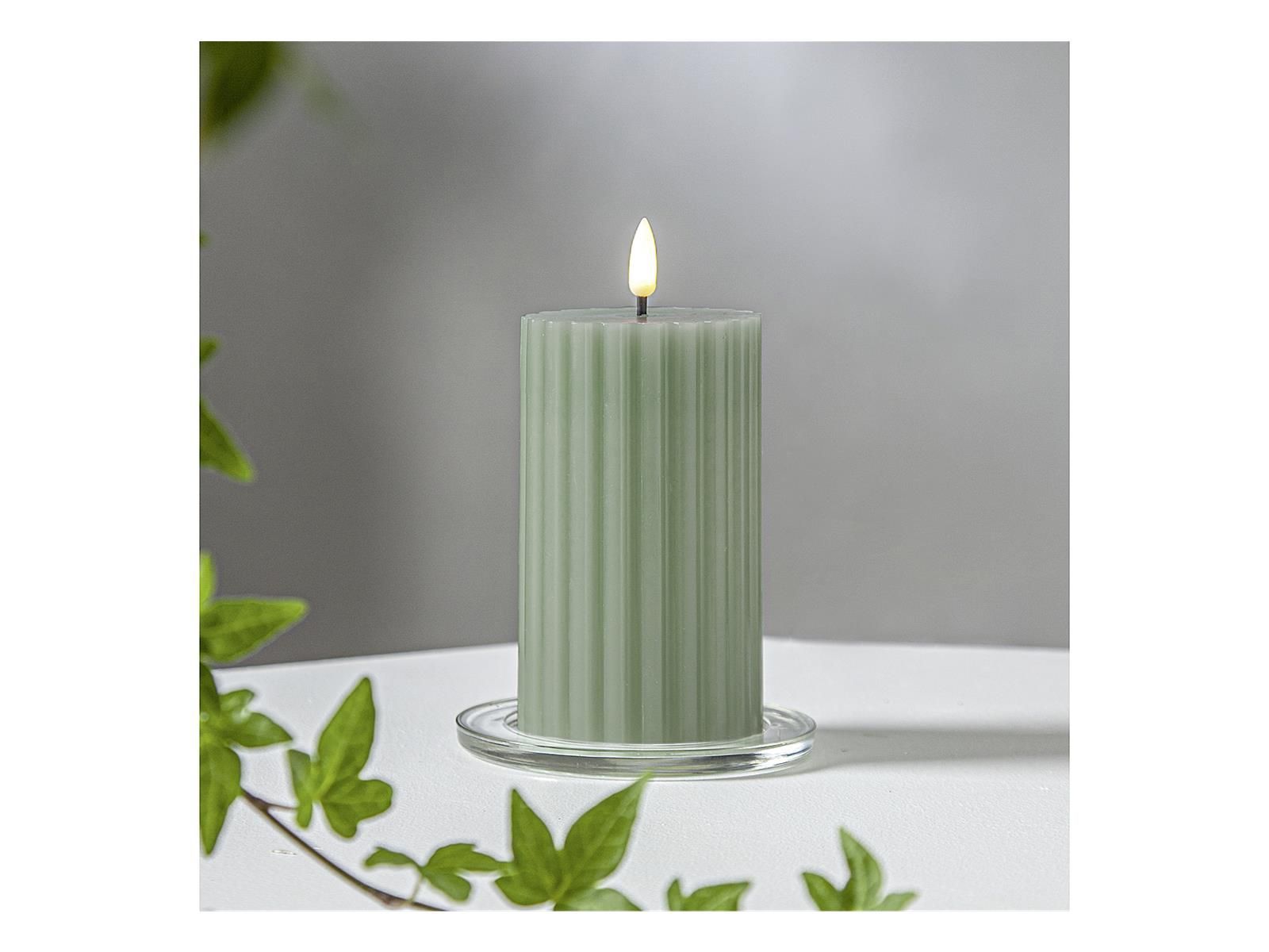 STAR TRADING STAR Trading LED Wachskerze Flamme Stripe Batterie Timer 15x7,5cm grün