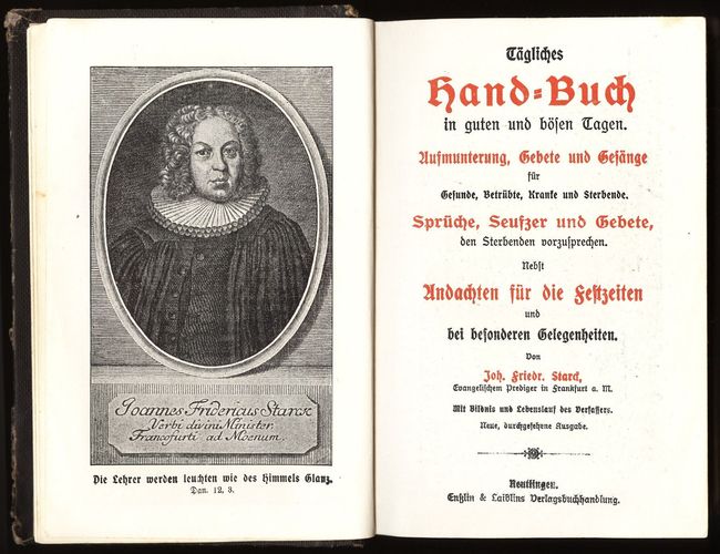 Aus meinem privaten Bücherregal: Starck's Gebetbuch, Johann Friedrich Starck, (1. und 2. Teil, siehe Bilder) Enßlin & Laiblins Verlagsbuchhandlung Reutlingen 1880 (Euro)* Hardcover Pappe, 19,5 x 13 x 3,4cm, 686g, 592 + 80 Seiten, *Alter Quelle Vergleich Buchfreund.de , keine Gewähr, da keine Ang