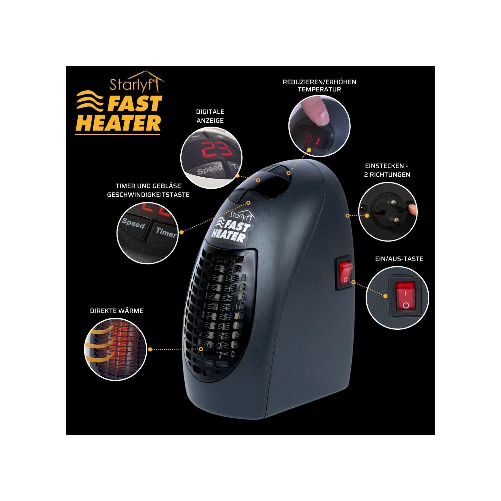 Starlyf® Mini-Heizung 400W mit Timer & Thermostat für Steckdose Heizlüfter
