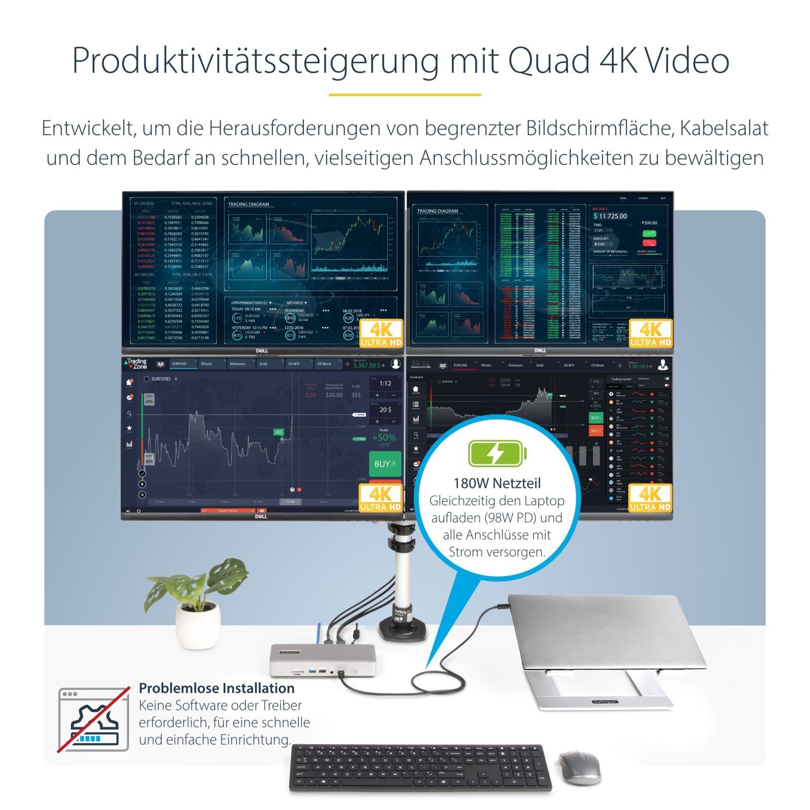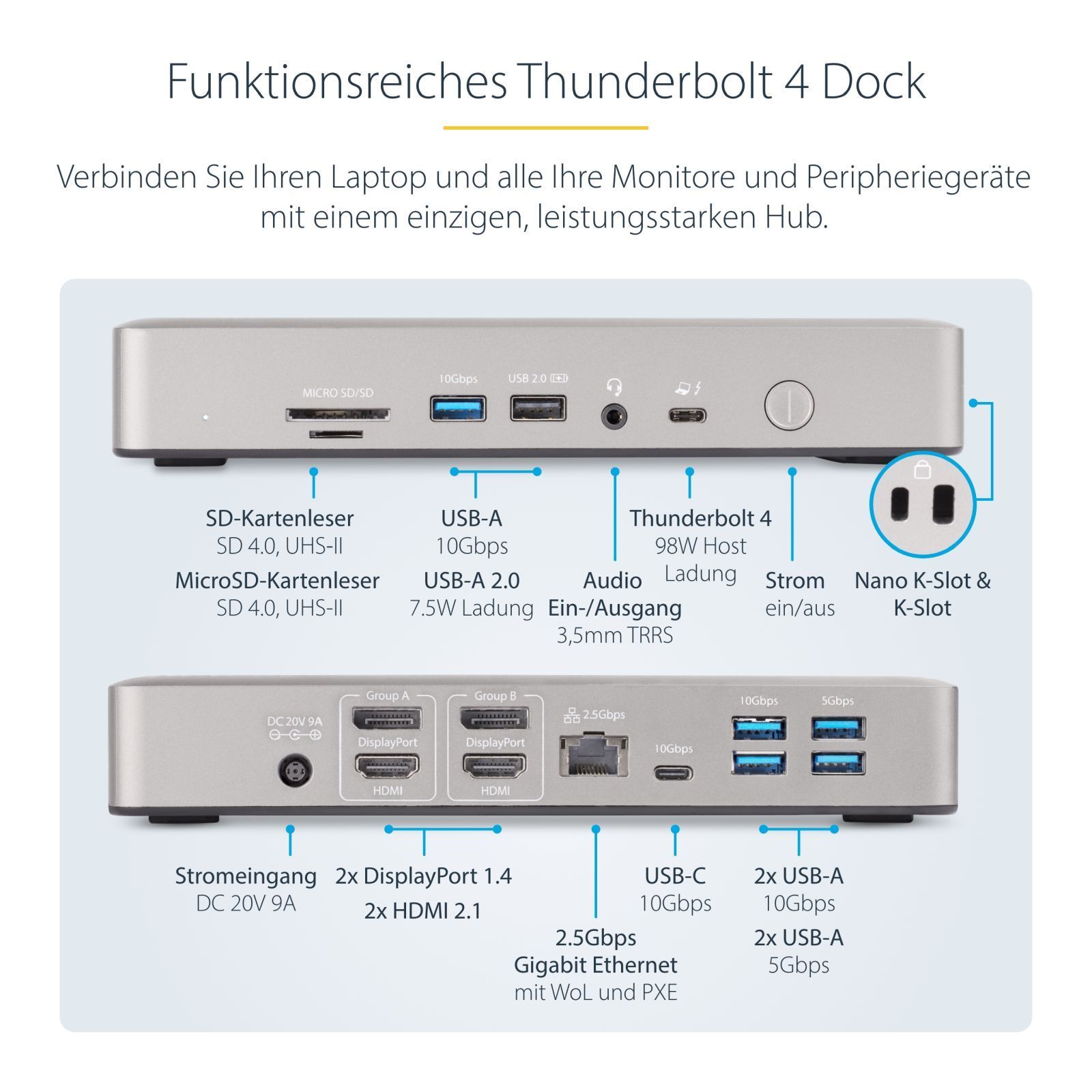 StarTech Thunderbolt 4 Multi-Display Docking Station, Quad/Triple/Dual Monitor Dock,