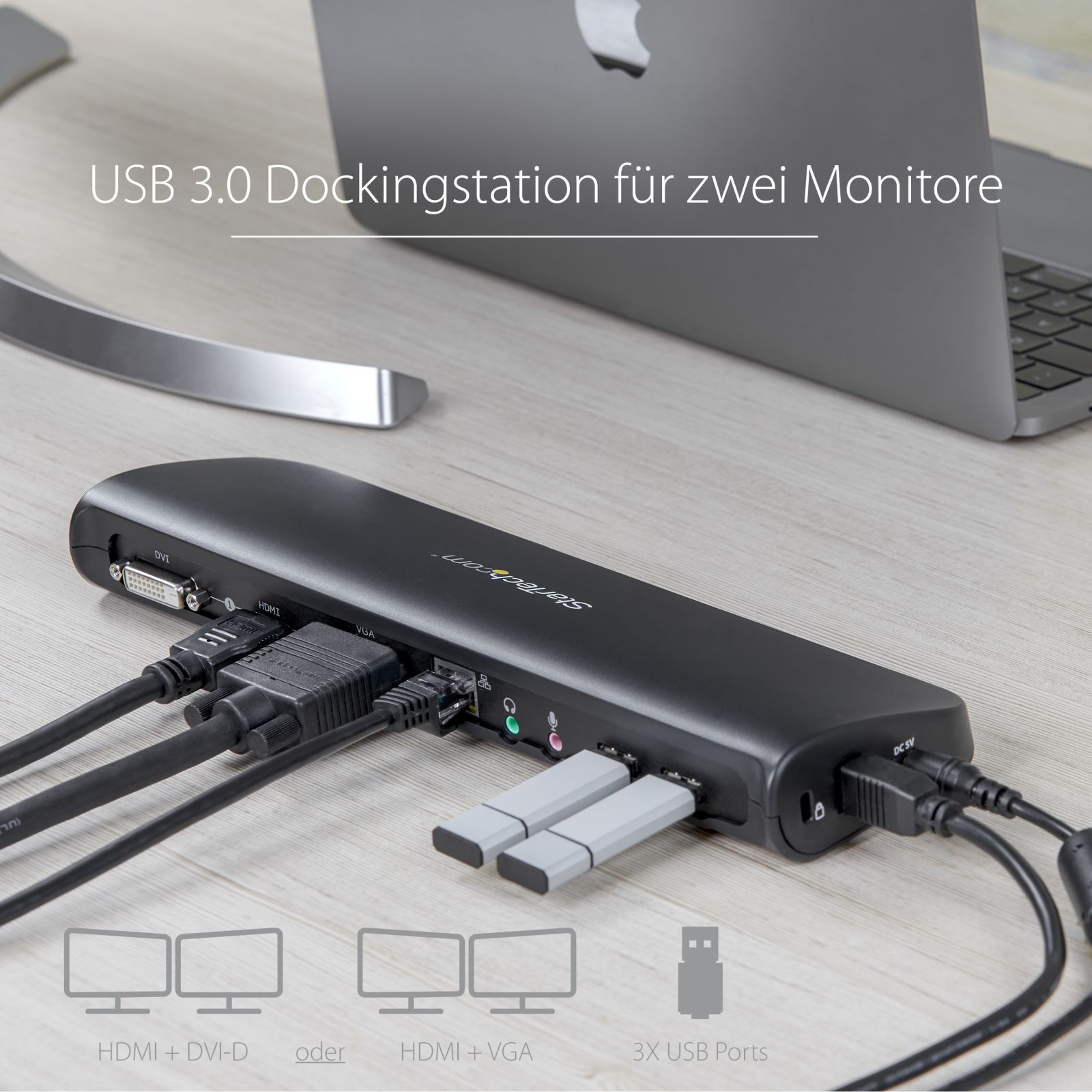 StarTech USB3SDOCKHDV USB Dockingstation, USB 3.0, dual Monitor, HDMI & DVI/ VGA, RJ