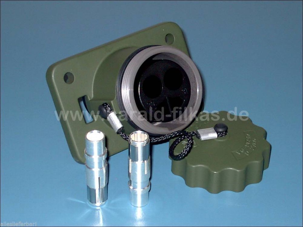 Starthilfe NATO-Steckdose grün nach VG 96917 G, mit Deckel an Seil, bis 42 Volt