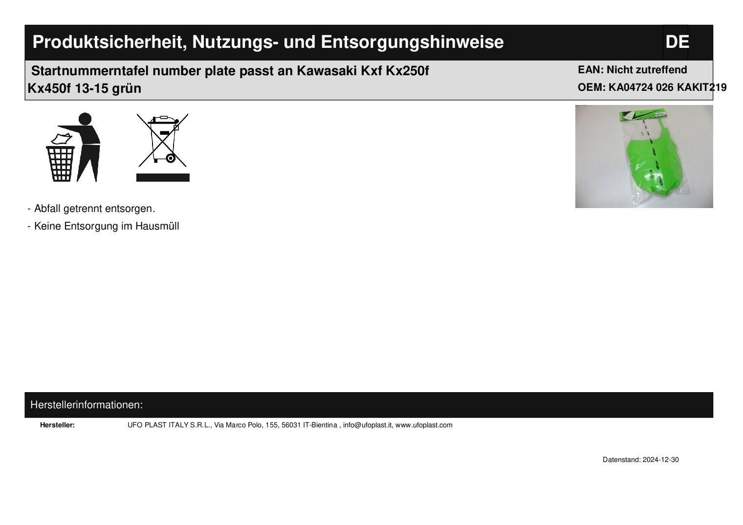 Startnummerntafel number plate passt an Kawasaki Kxf Kx250f Kx450f 13-15 gr?n