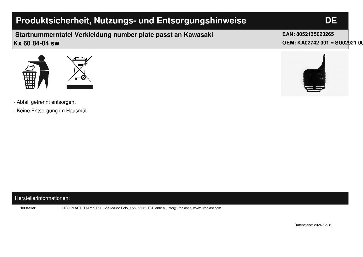 Startnummerntafel Verkleidung number plate passt an Kawasaki Kx 60 84-04 sw