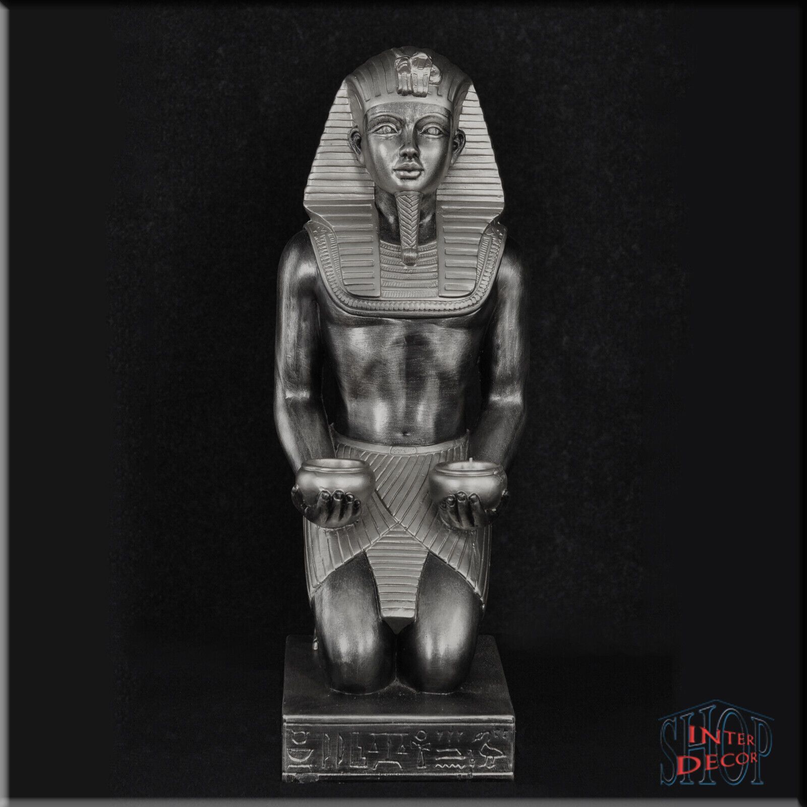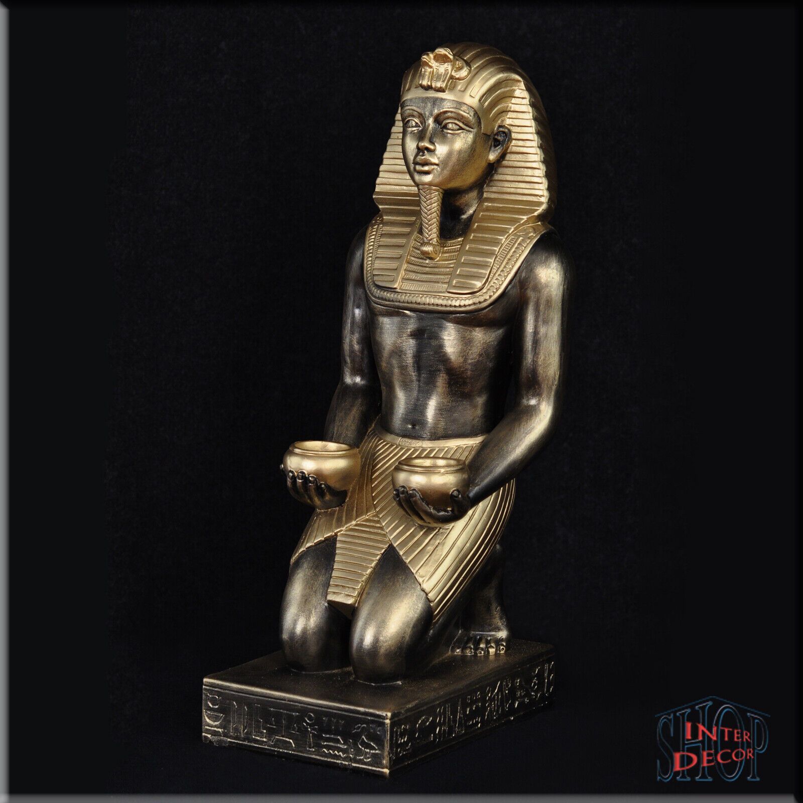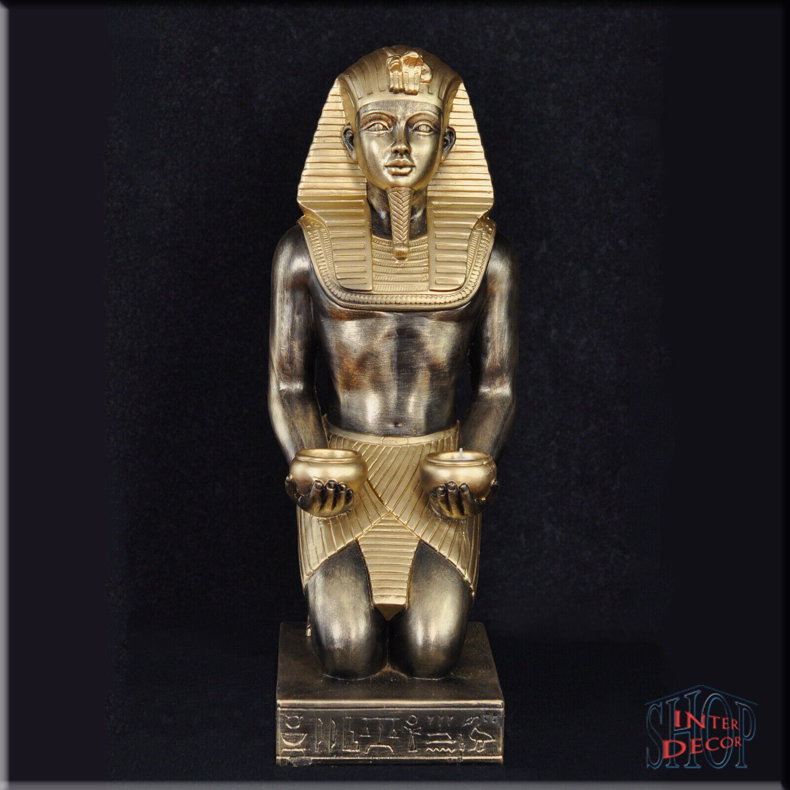 Statue Figur Antike Tutanchamun mit Teelichthalter Pharao Ägyptisch Kunstharz
