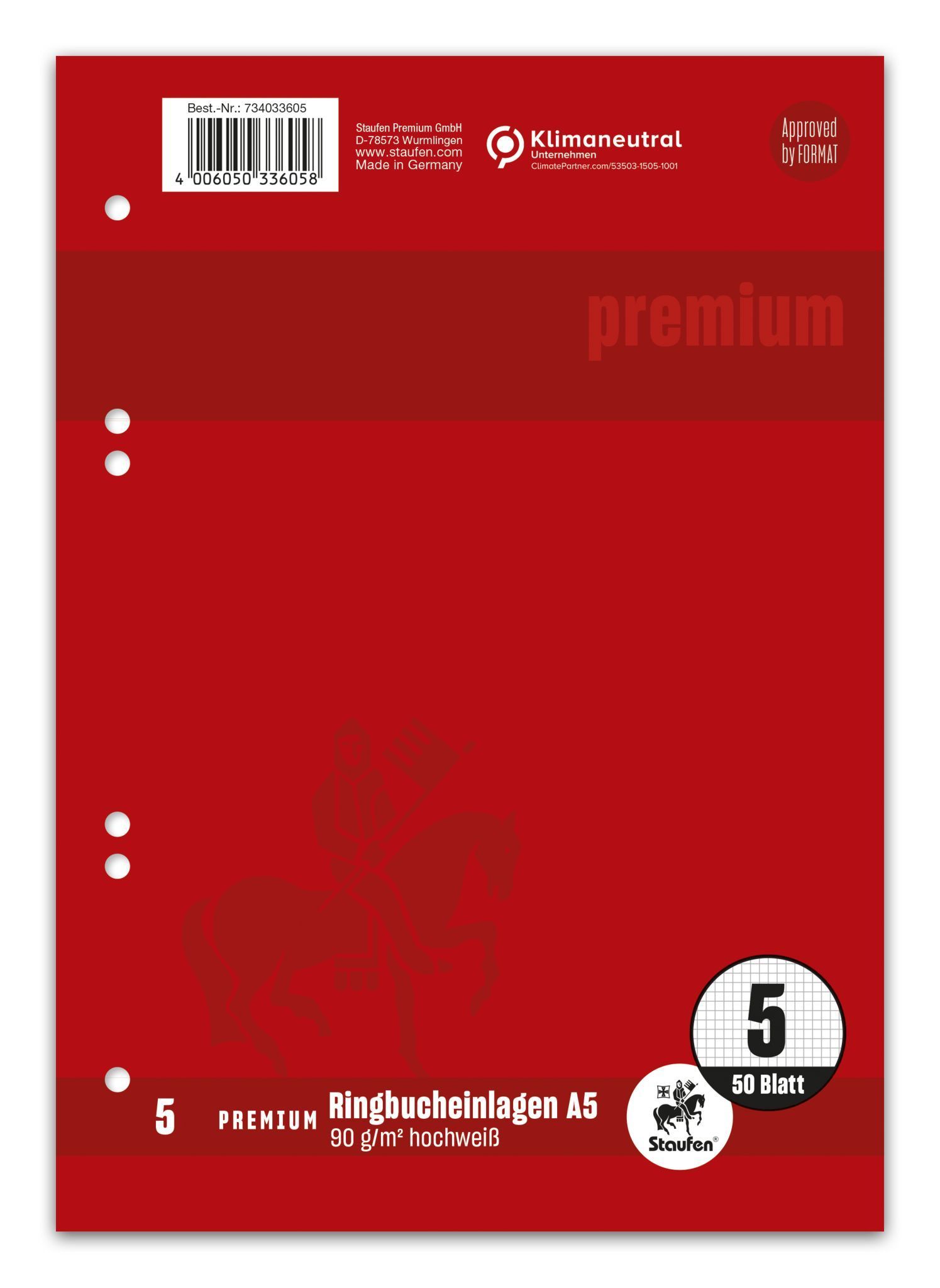 Staufen® 734033605 Ringbucheinlage Premium LIN 5 - A5, 90 g/qm, 50 Blatt