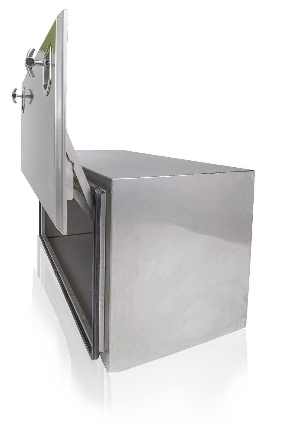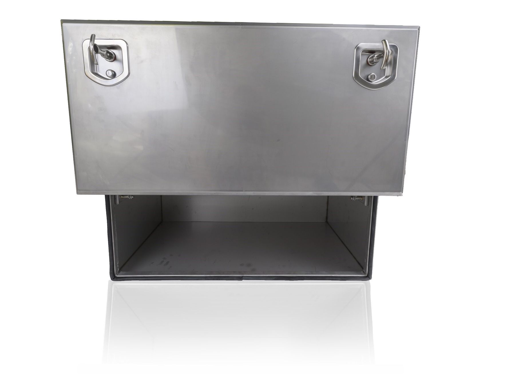 Staukasten Edelstahl mit Busscharnier - Parallelhubdeckel aus 1,5 mm starkem Edelstahlblech gefertigt spritzwasser geschützt der Kasten wird durch eine umlaufende Gummidichtung abgedichtet die Verschlüsse sind aus Edelstahl und abschließbar Ideal geeignet für Abschleppfahrzeuge, Fahrzeuge zur Bauste