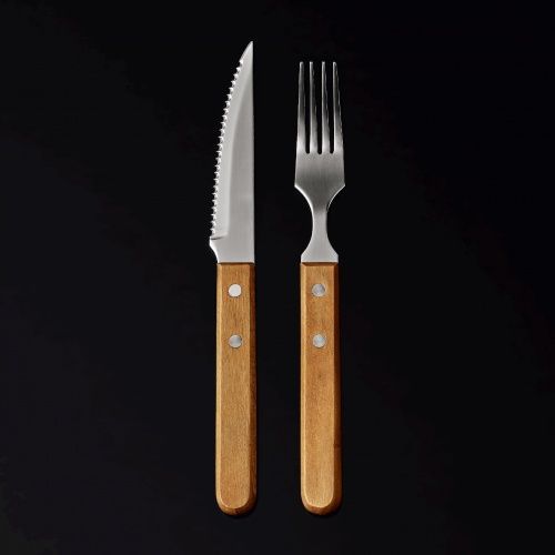 Steakbesteck mit Holzgriff, 21 cm, Chromstahl