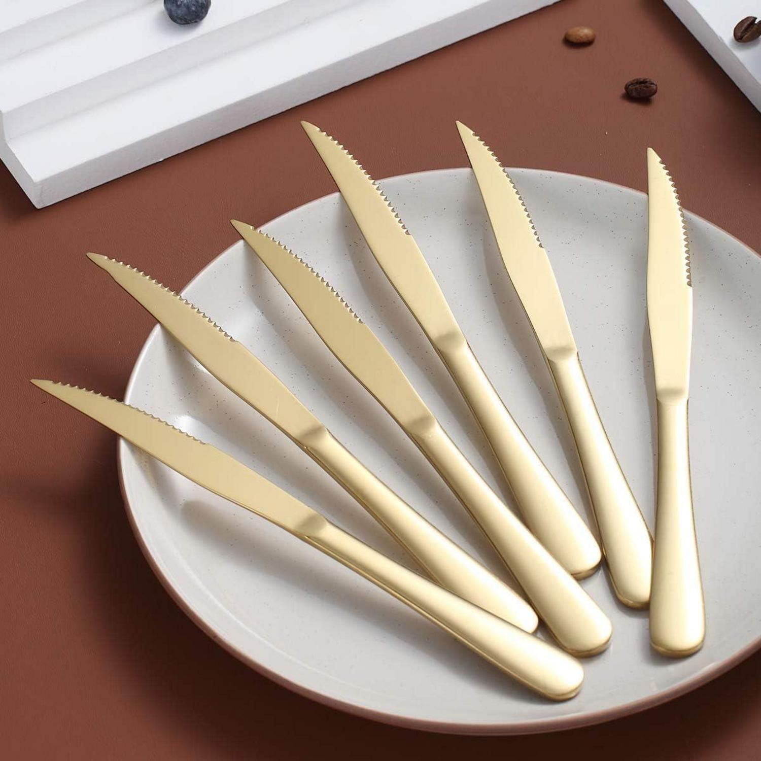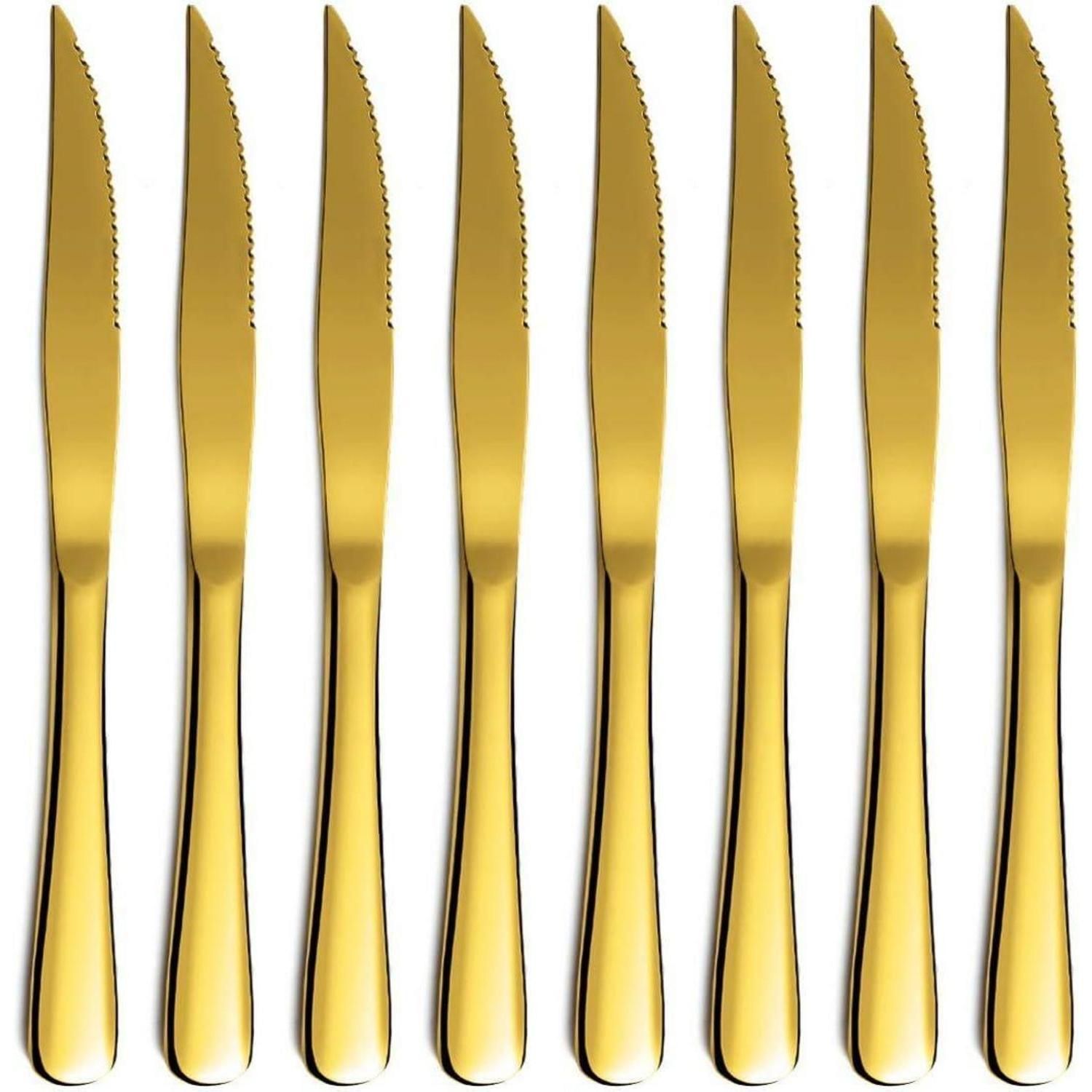 Steakmesser Set 8 Hochwertig Edelstahl Titanvergoldet Spülmaschinenfest