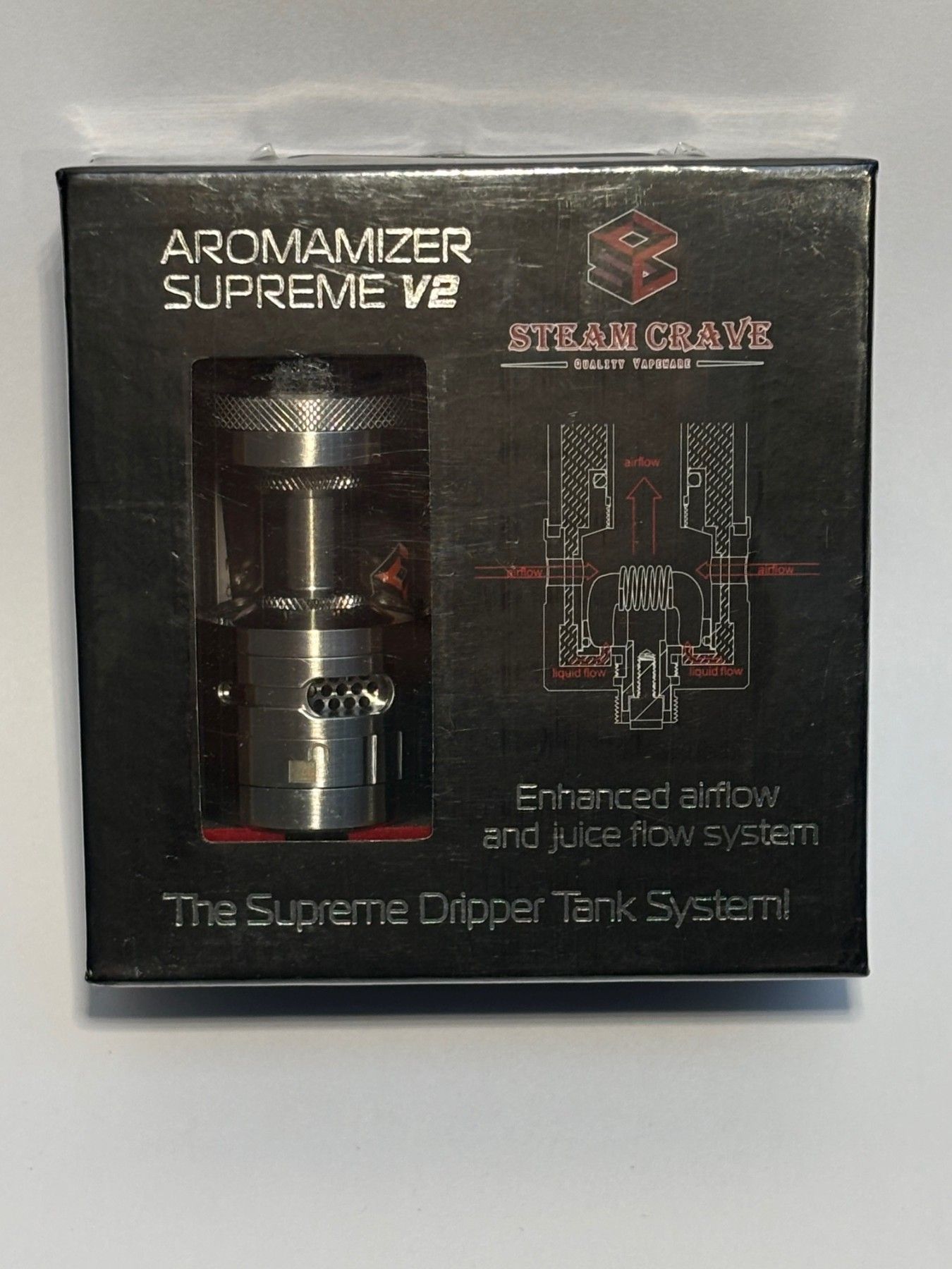 Der Steam Crave Aromamizer Supreme V2 RTA ist ein leistungsstarker Selbstwickel-Tankverdampfer, der für intensiven Geschmack, dichte Wolken und maximale Flexibilität steht. Die V2-Version setzt auf ein überarbeitetes Airflow-Design, ein großzügiges Deck und die gewohnt robuste Verarbeitung von Steam