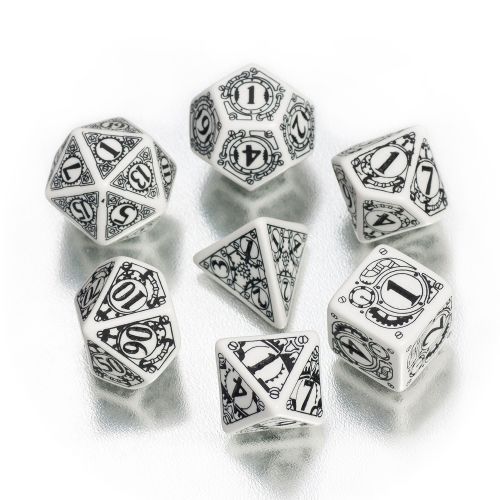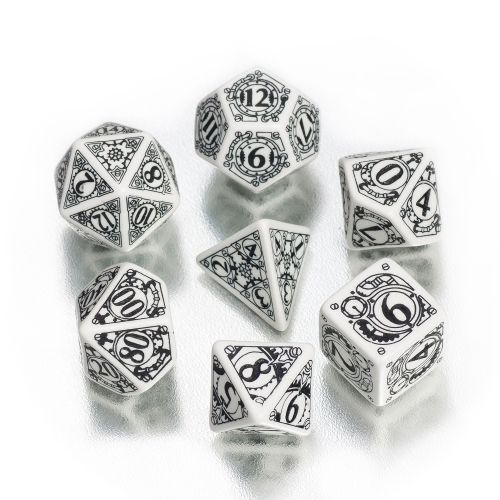 Q-Workshop Steampunk Würfel-Set - 7 Stück - weiss und schwarz