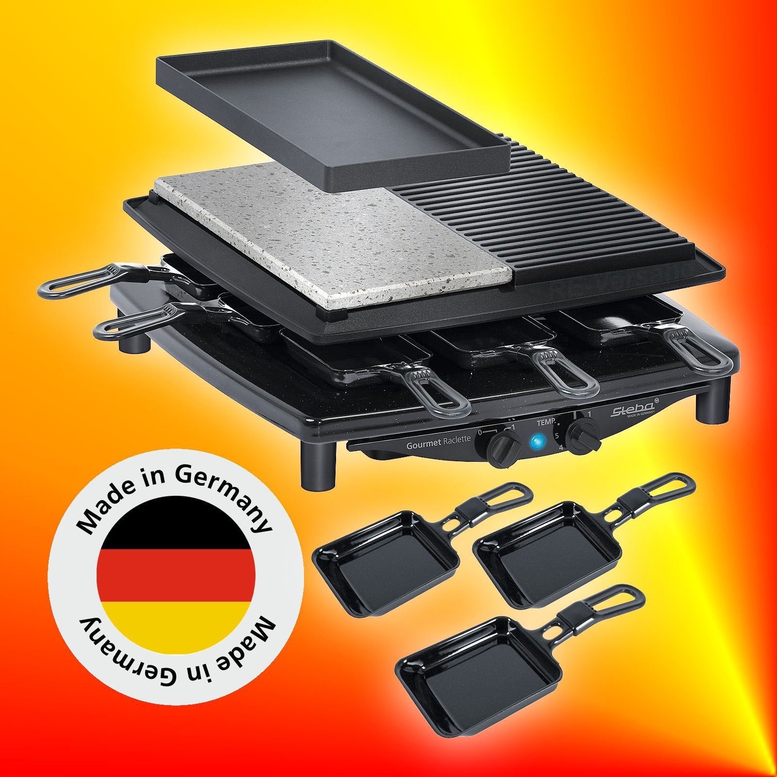 Steba Steba RC 4 Plus Deluxe Raclette Raclette-Grill Naturstein Lavastein Steingrill