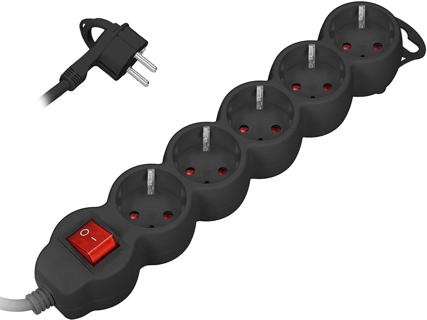 Steckdose mit 3Meter Kabel Schwarz mit Gutstecker Flach 5er Beleuchtet Schalter Mehrf