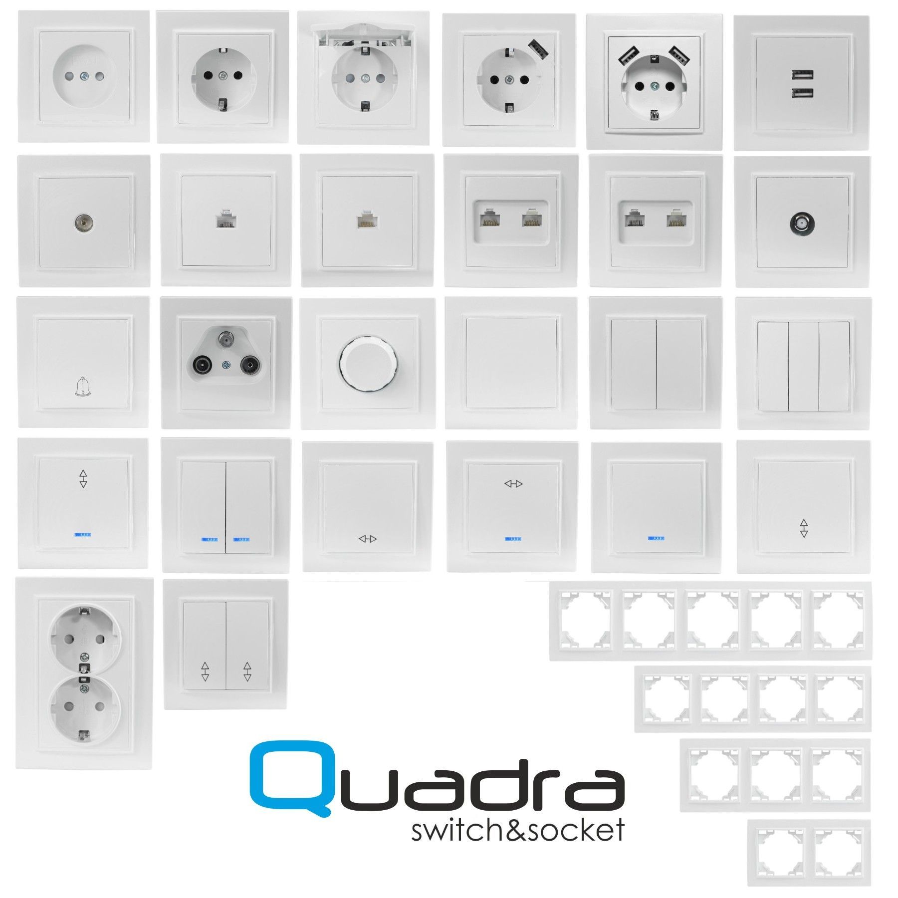 Steckdose Wandsteckdose Wandschalter Schalter Taster Wechselschalter Rahmen USBC Steckdosen und Schalter der QUADRA-Serie in Weiß. Zum Einbau in Kunststoff- oder Glasrahmen. Hergestellt aus hochwertigen Materialien, leicht zu montieren, unempfindlich gegen Beschädigungen. Technische Daten: Marke: Ad