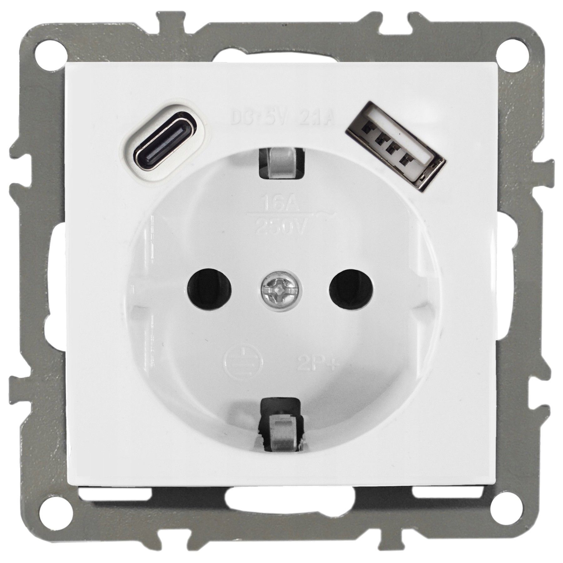 Schuko Steckdose 230V Unterputz, Schuko Steckdose 230V mit 2 x USB, Schuko Steckdose 230V mit USB-C + USB-A