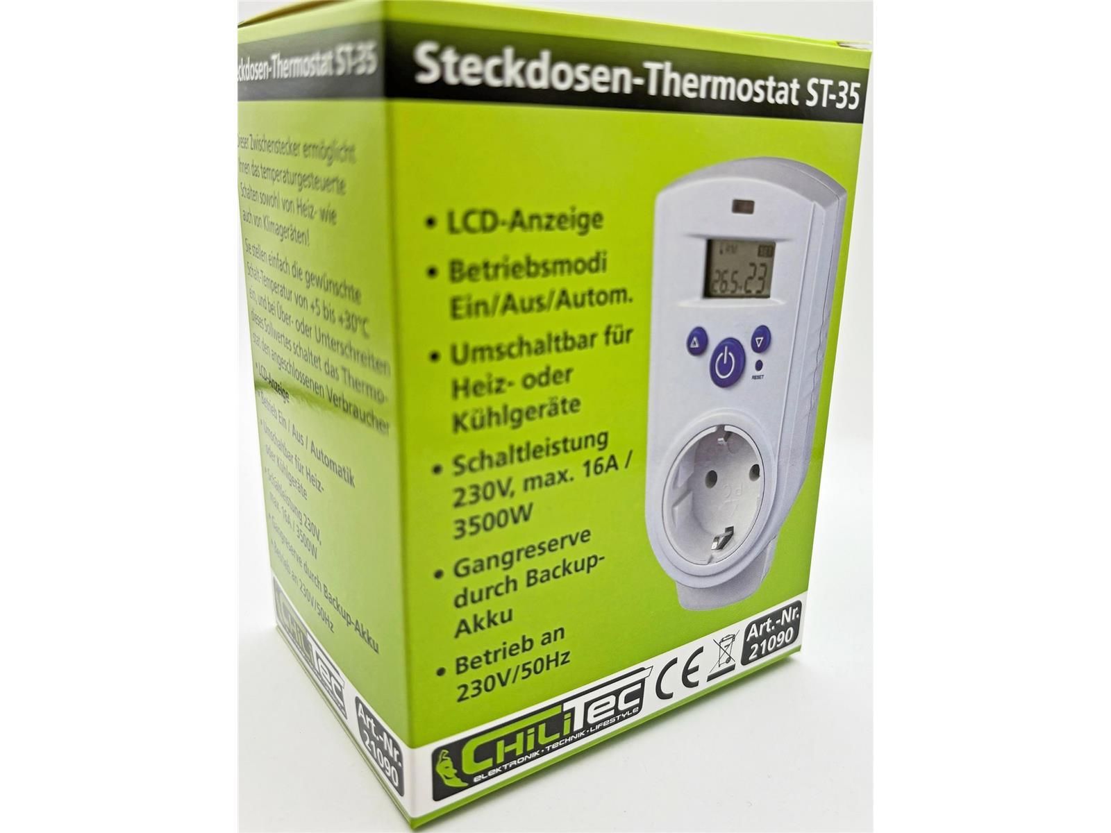 ChiliTec Steckdosen-Thermostat "ST-35 digi"max. 3500W, 5-30°C, EIN/AUS/AUTO, 230V