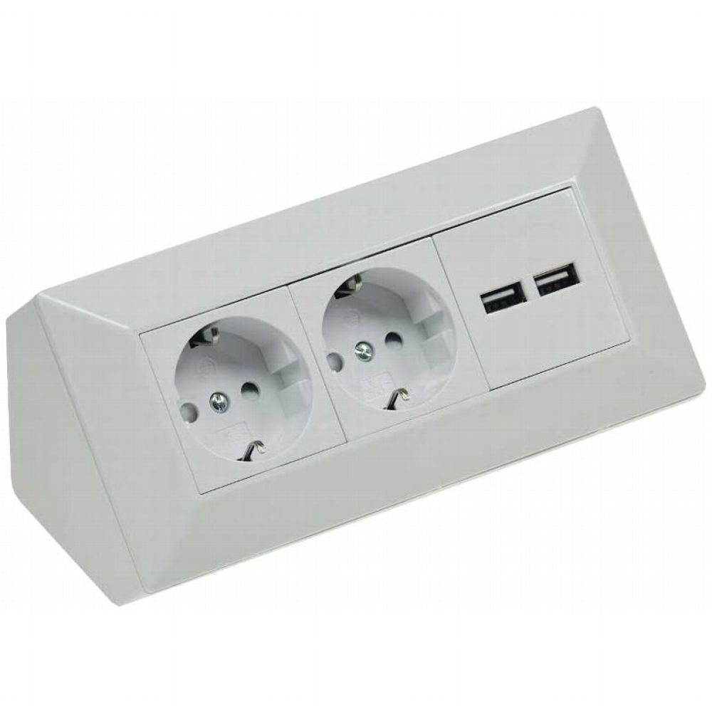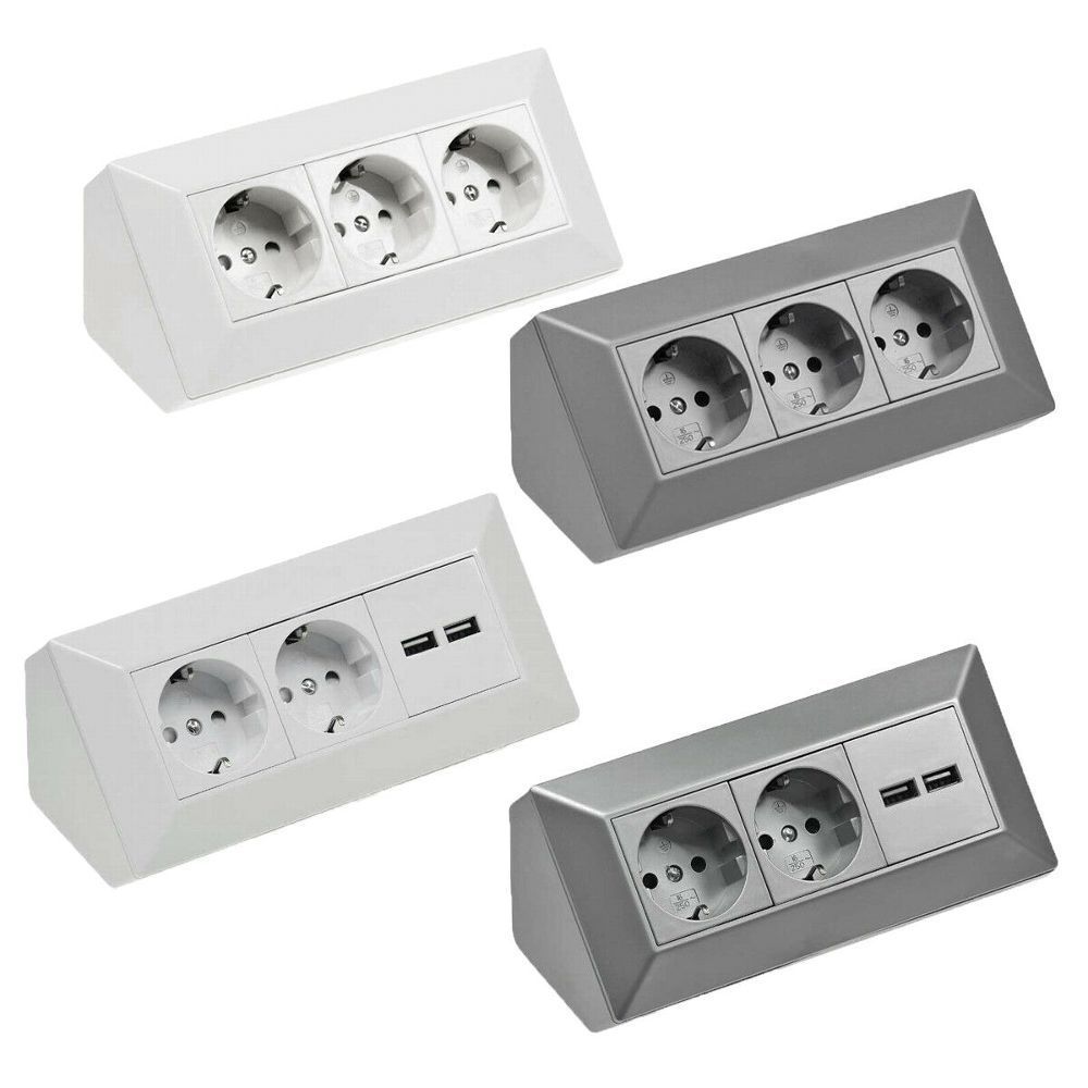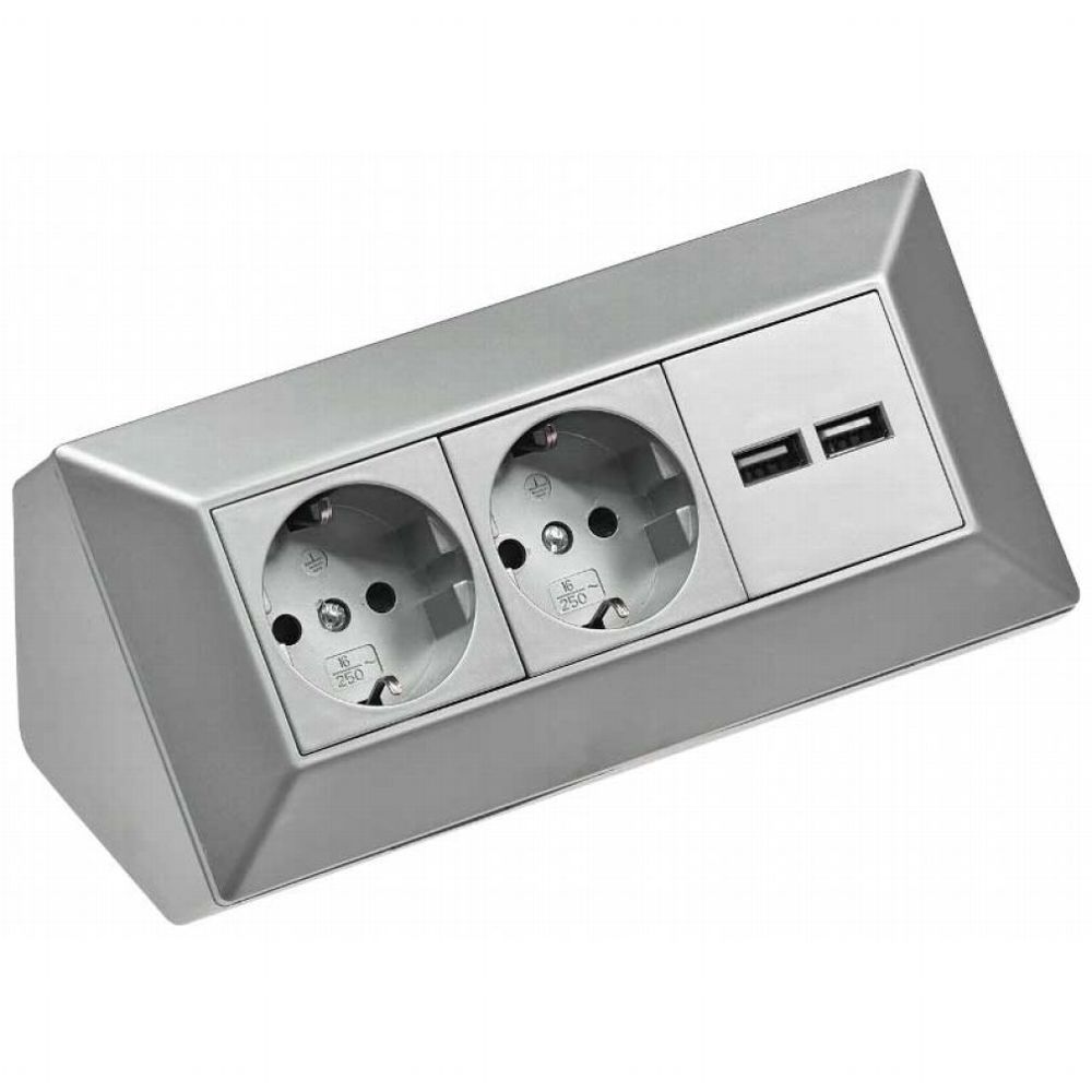 ChiliTec Steckdosenblock, 2x USB-Anschluss, Mehrfachstecker Steckdosenleiste silber weiss