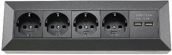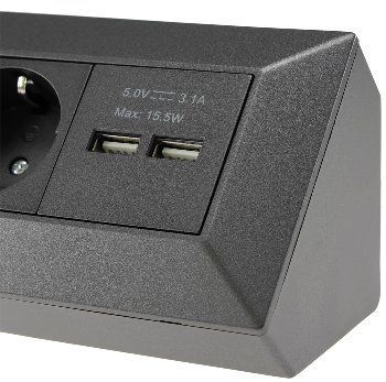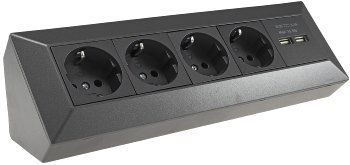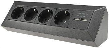 ChiliTec Steckdosenblock 4-Fach mit 2x USB-A, Anthrazit