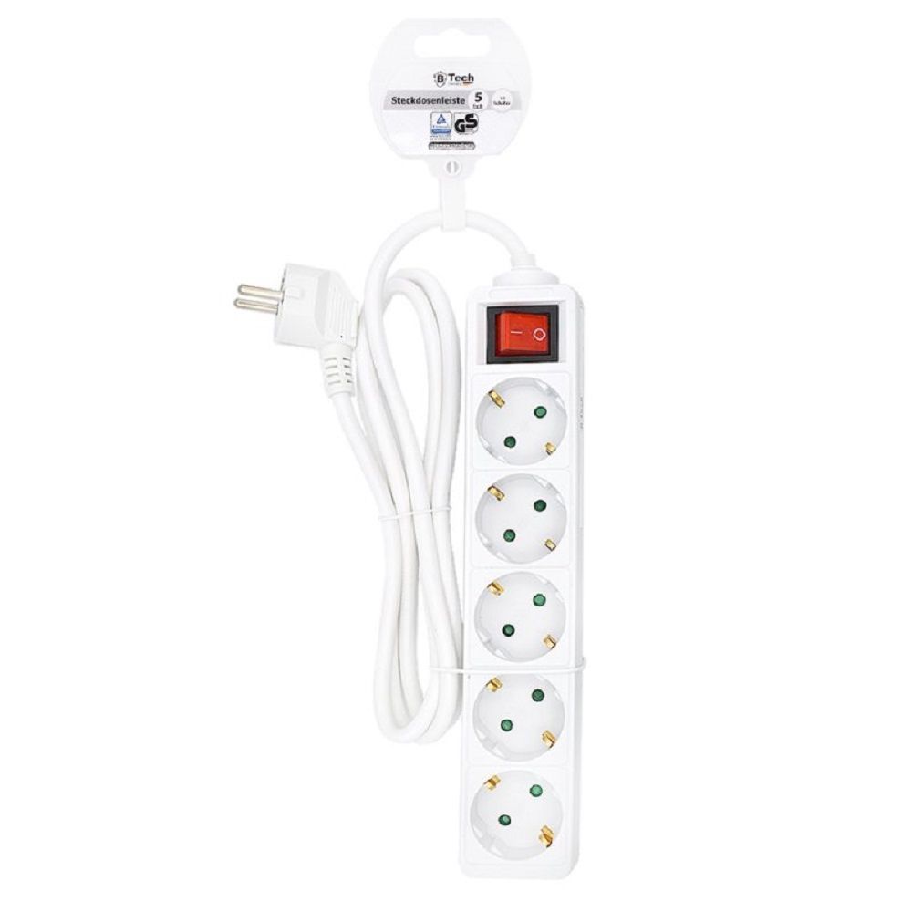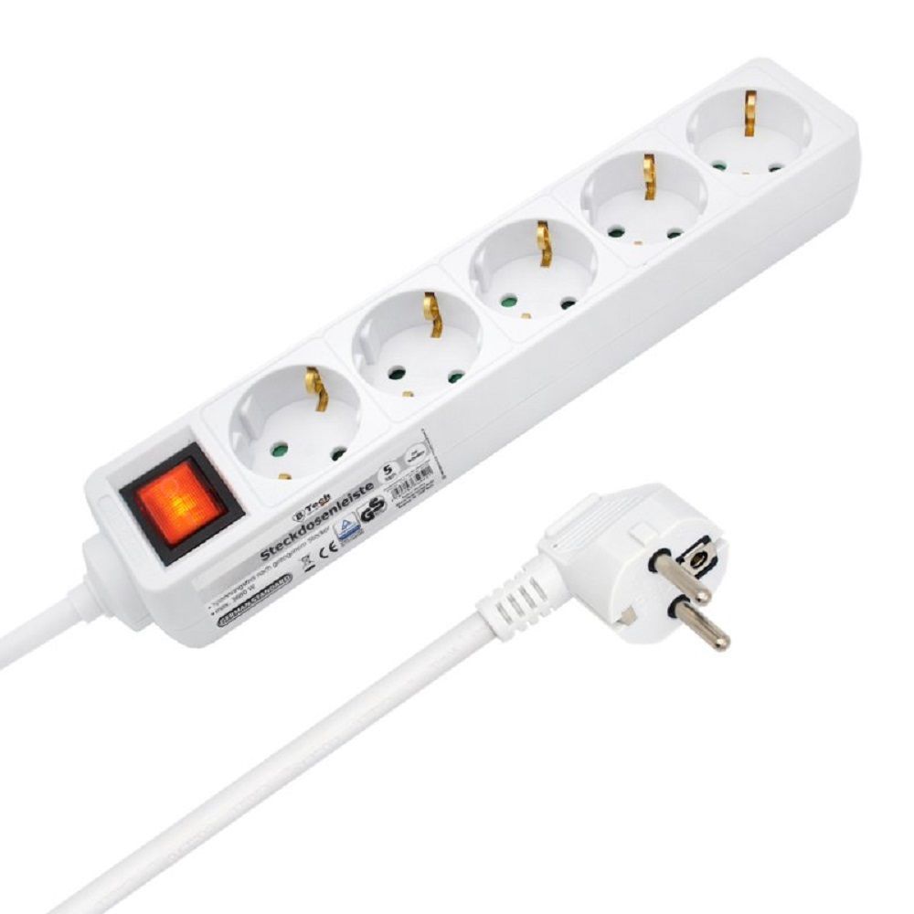 Steckdosenleiste 5-fach Weiß mit Schalter TÜV GS Mehrfachsteckdose