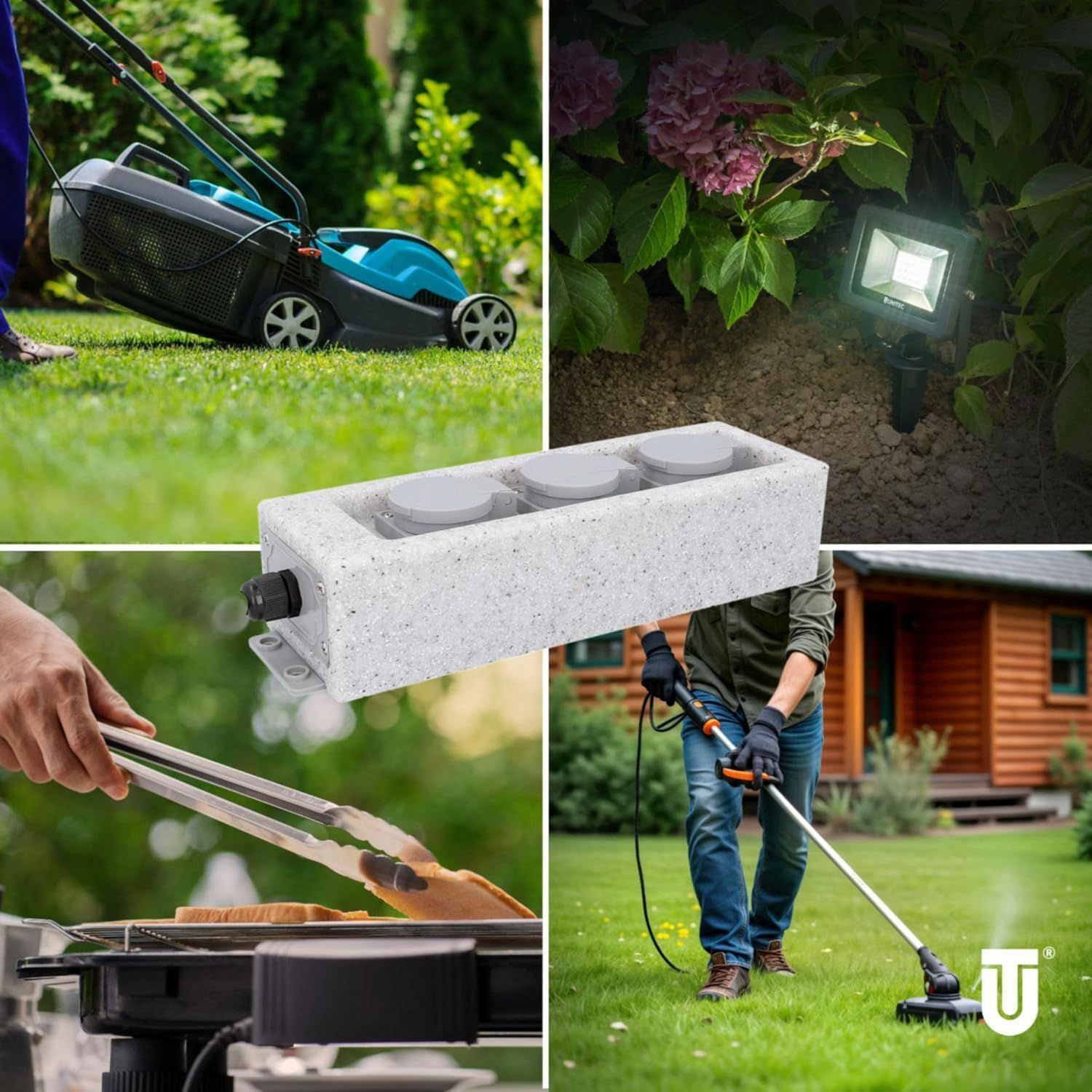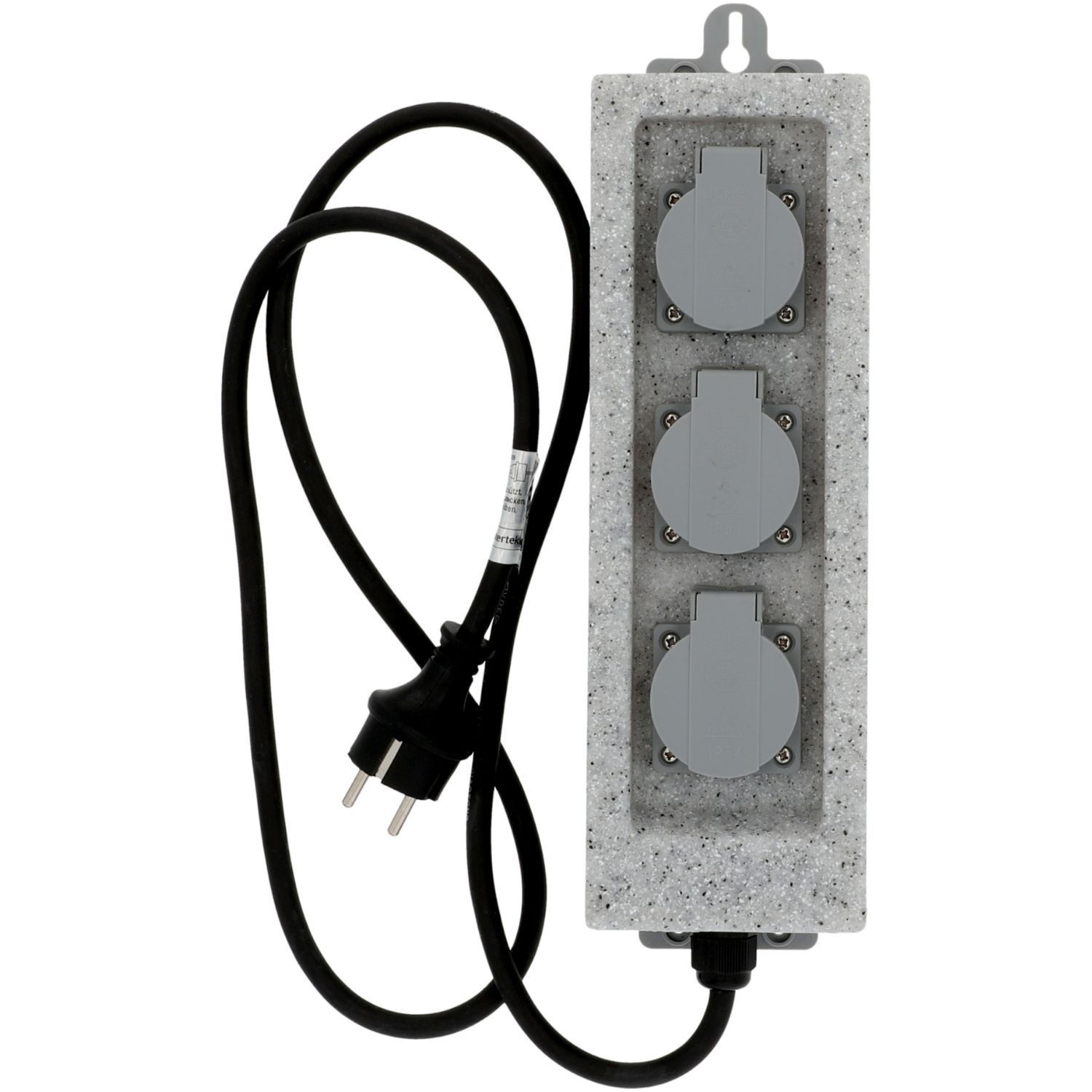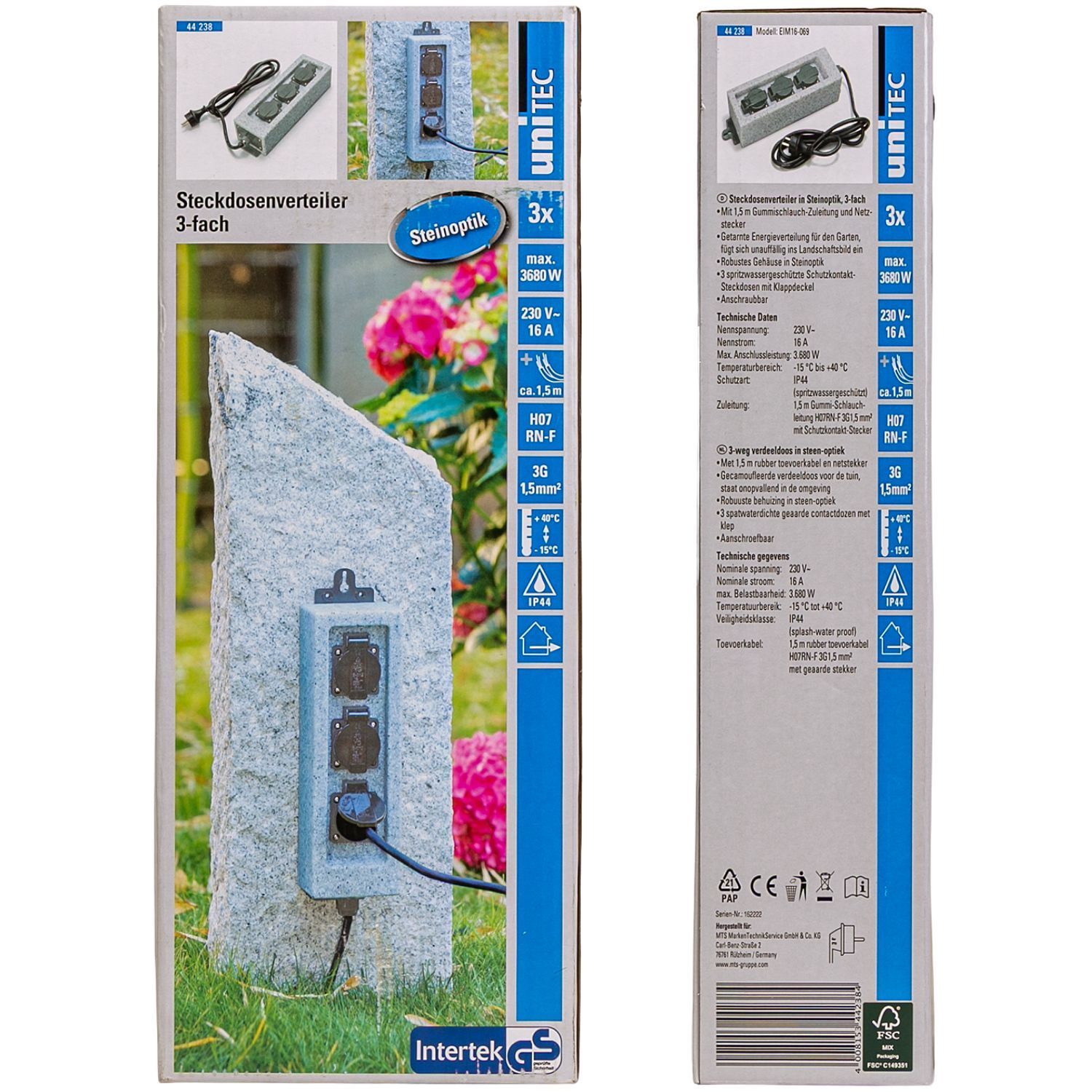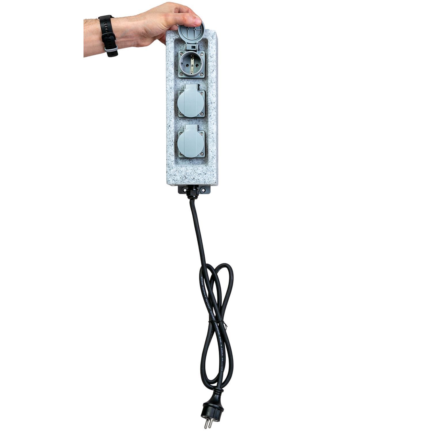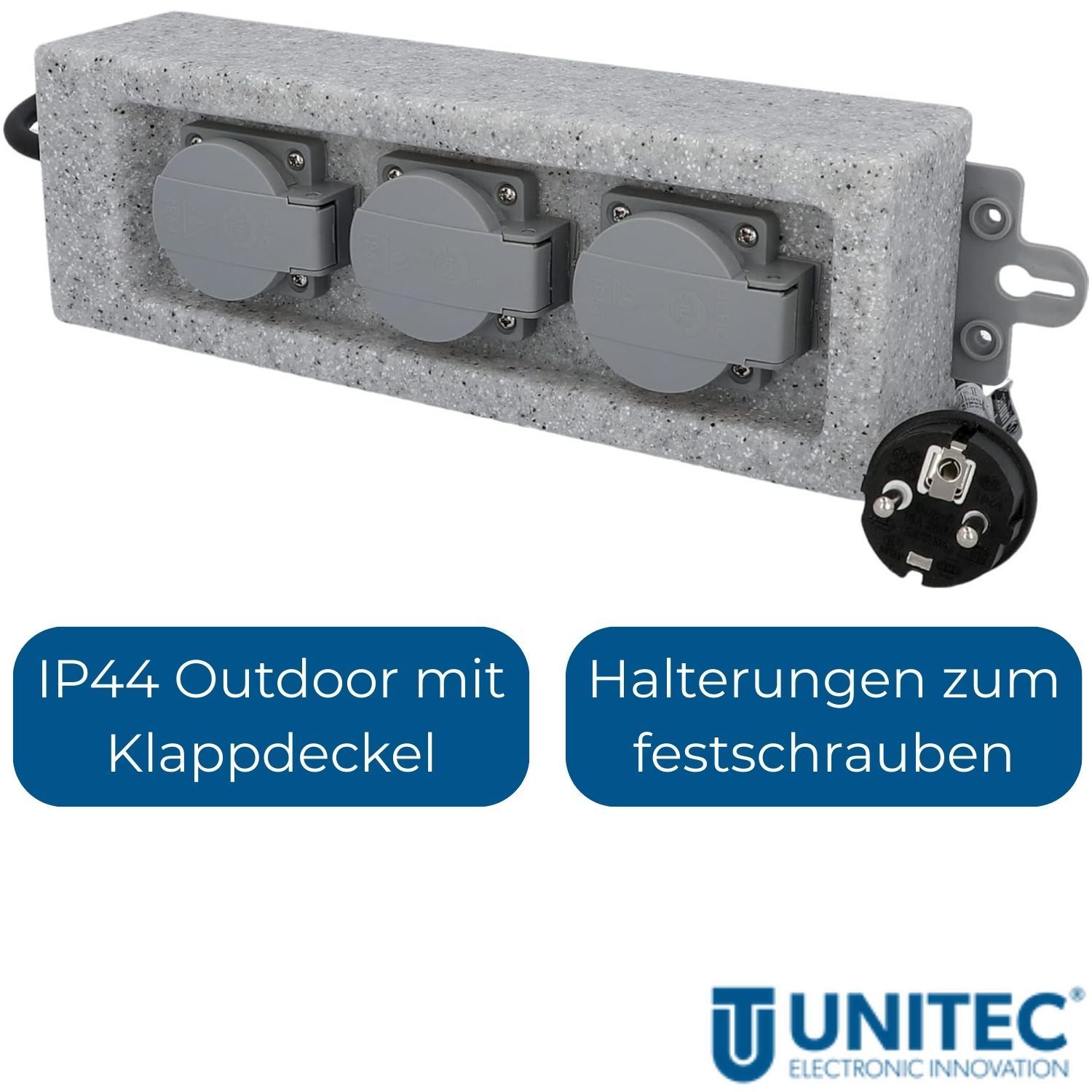 Unitec Steckdosenleiste IP44 Outdoor 3-Fach Stein Mehrfachsteckdose Garten Außenbereich