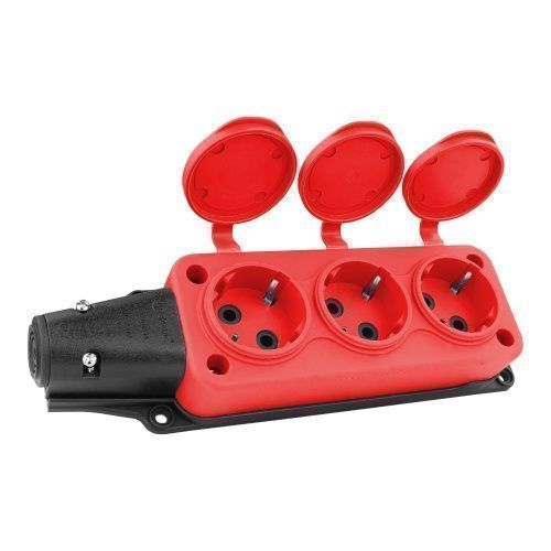Steckdosenleiste Mehrfachsteckdose 3-fach Aussen Schuko rot
