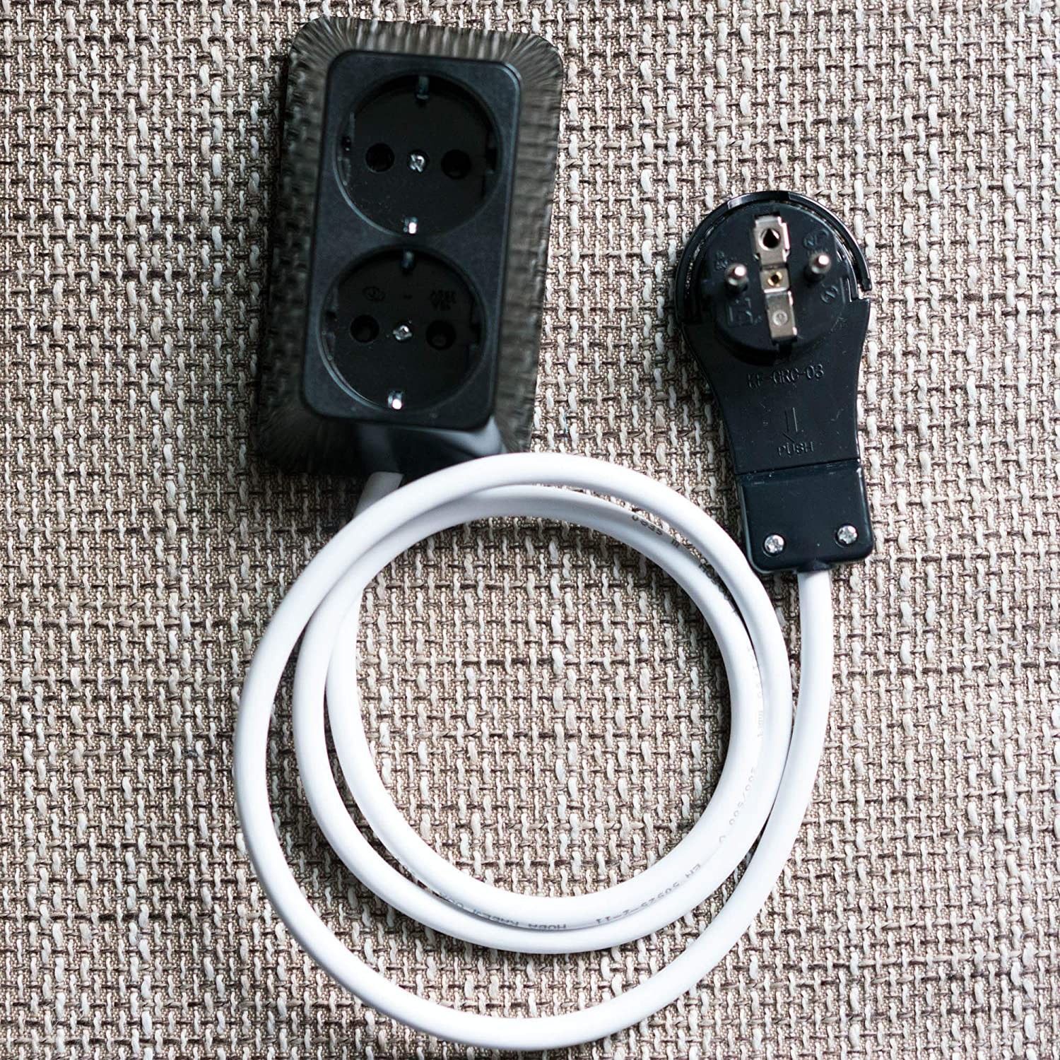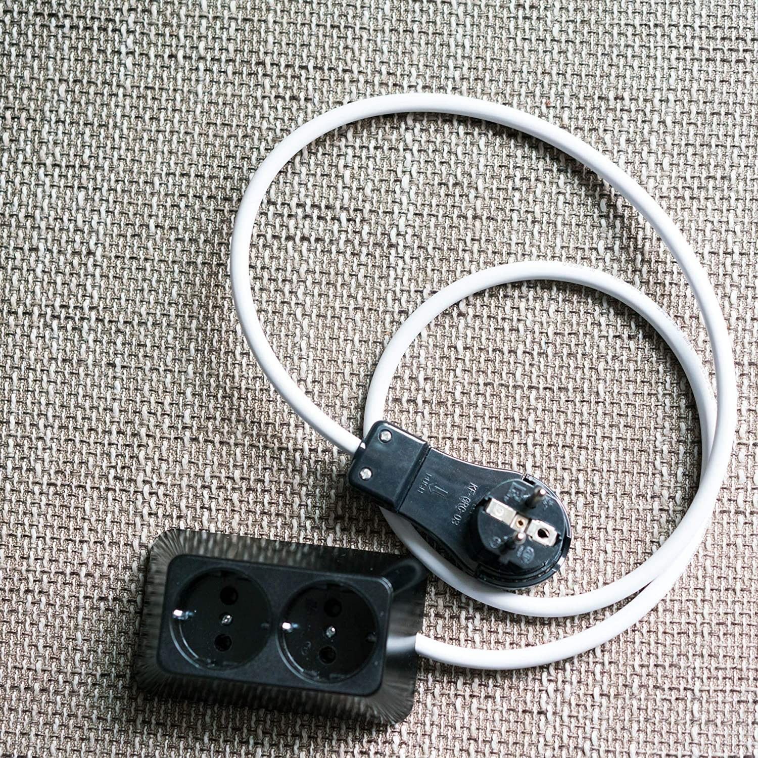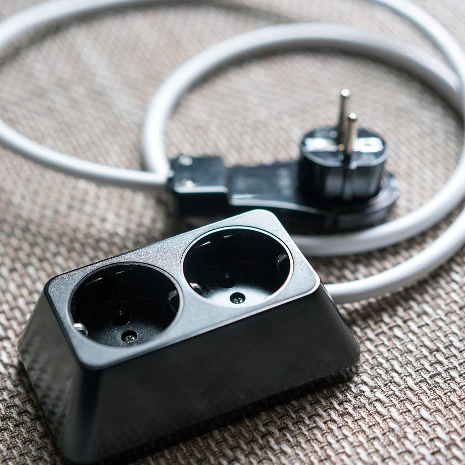 Steckdosenleiste Schwarz 2-fach-16A-250V gut Flach Stecker mit Weissem Kabel