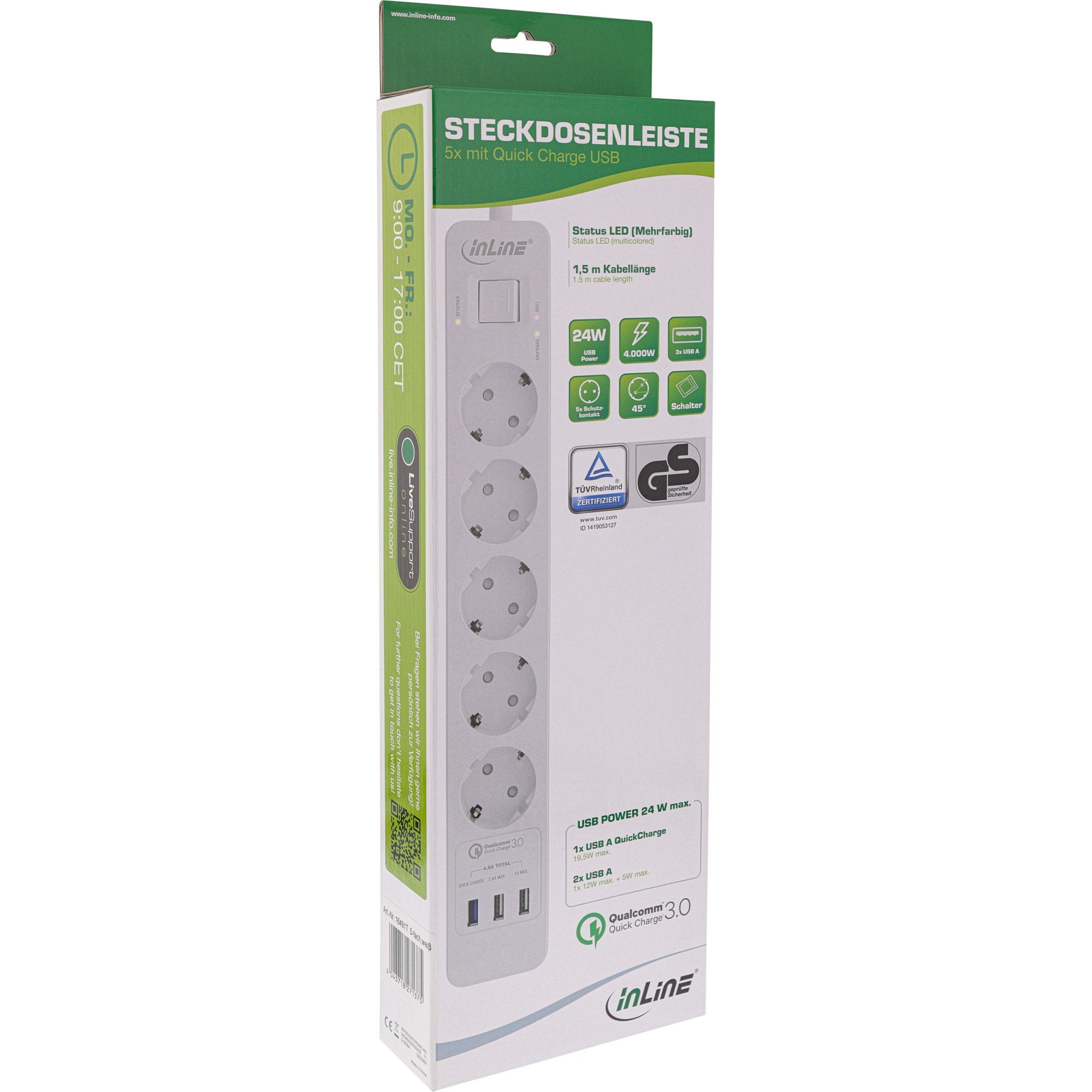 InLine® Steckdosenleiste5-fach SchutzkontaktÜberspannungsschutz und QuickCharge USBmit S