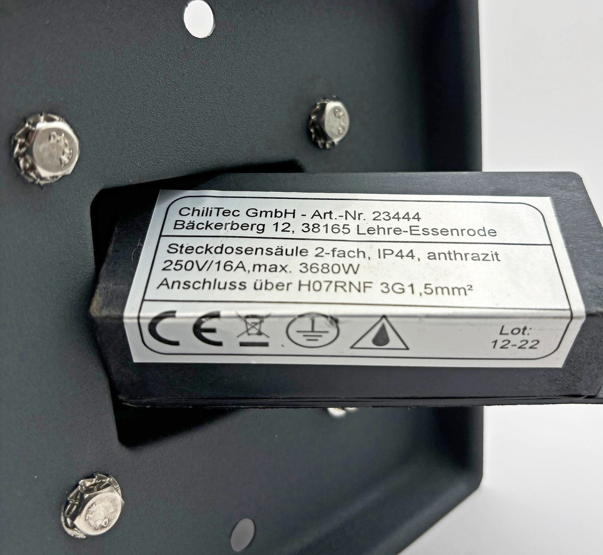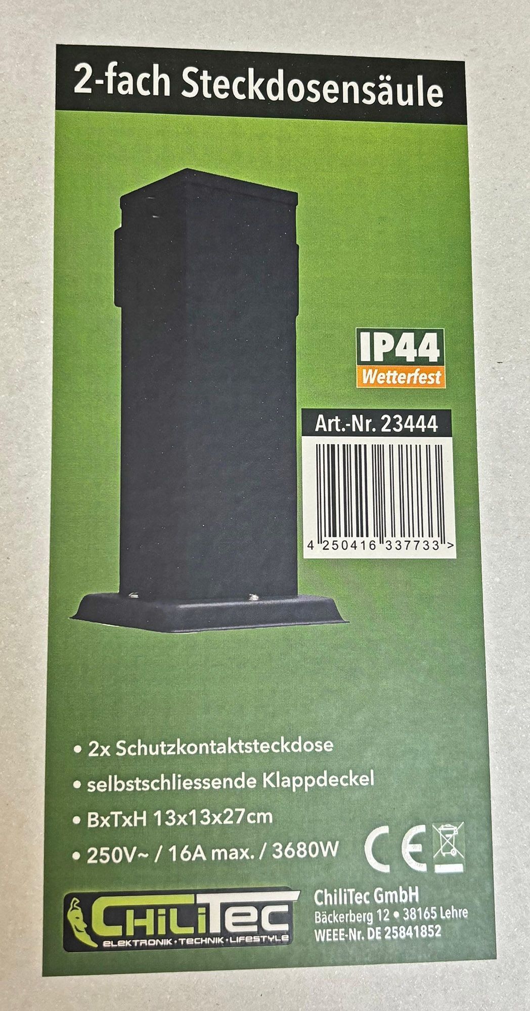 ChiliTec Steckdosensäule 2-fach, IP44, Anthrazit 250V / 16A, 13x13x27cm