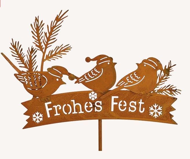 Stecker Schild Wintervogel Dekor Frohes Fest rostig Finish Weihnachtsdekoration Deko
