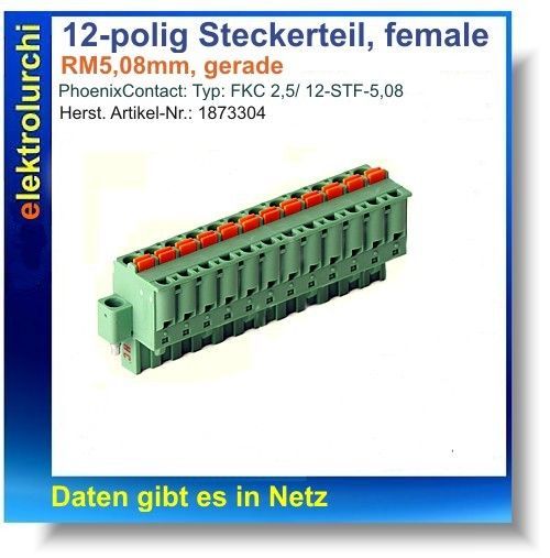 Steckerteil 12-polig, Phönix Contact, FKC 2,5/12-STF-5,08, 1873304, female, 1St