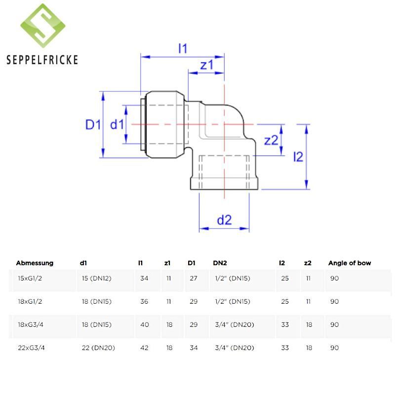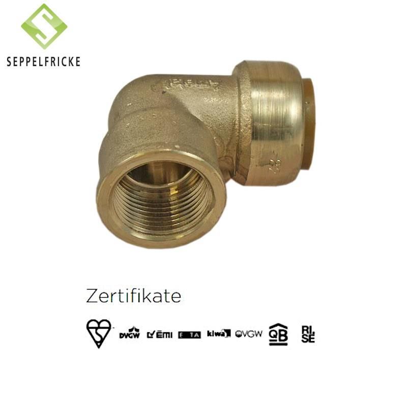 • Steckfitting Messing Winkel 90° • IG/Steck, 1x Steck-, 1x Innengewinde • Seppelfricke Tectite Fitting • für Heizung und Trinkwasser