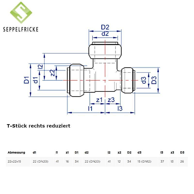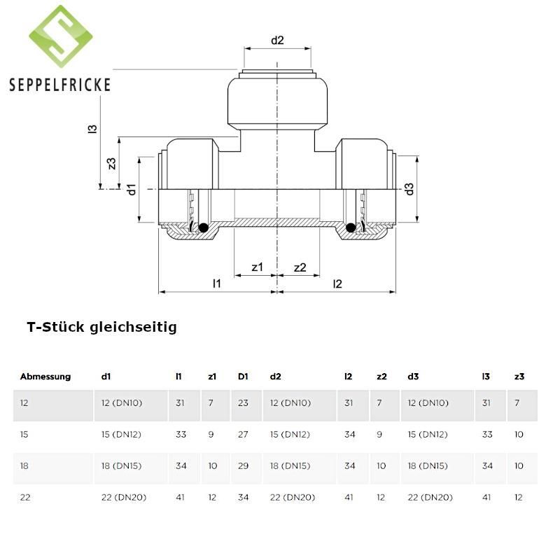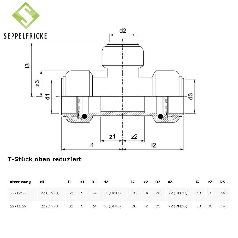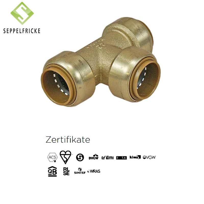 Steckfitting Messing T-Stück, 15-22mm, gleich oder reduziert, Tectite T130