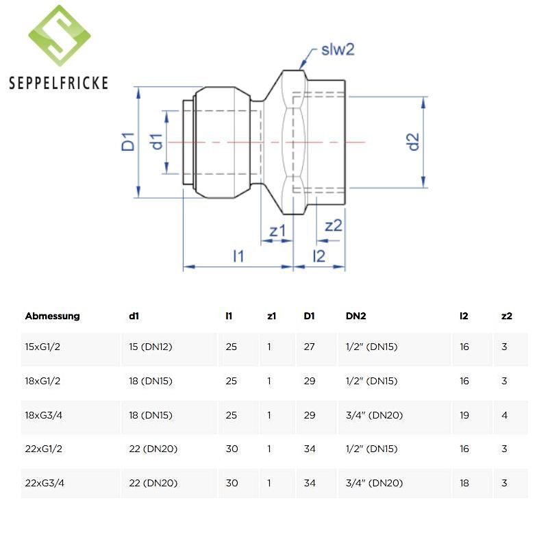 • Steckfitting Messing Übergangsmuffe • Steck x IG, 15-22mm, 1/2"-3/4" • Seppelfricke Tectite Fitting • für Heizung und Trinkwasser