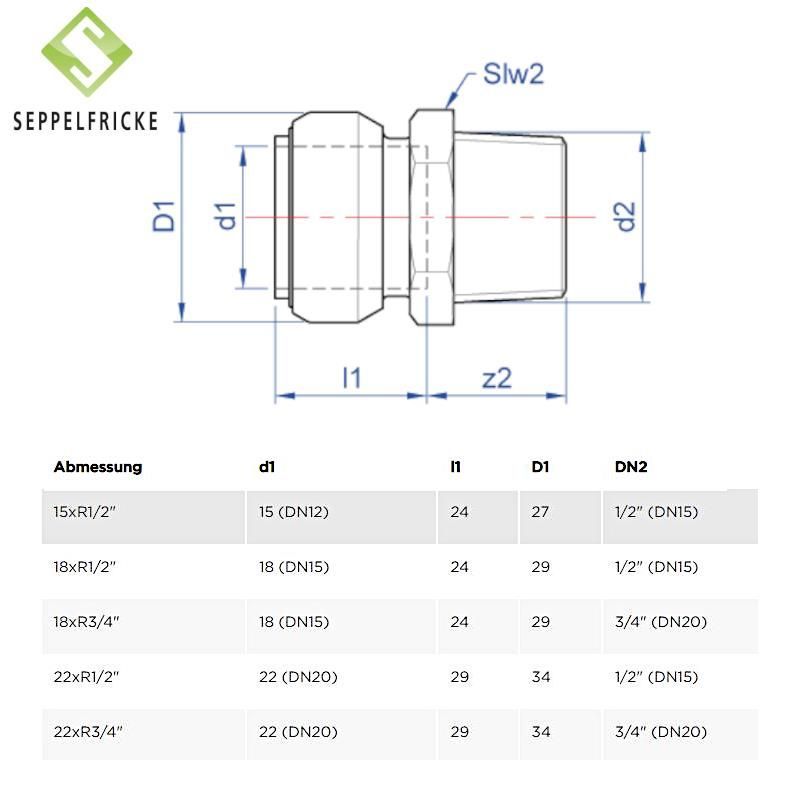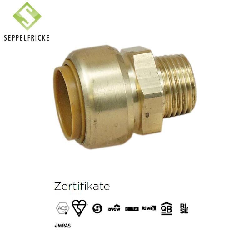 • Steckfitting Messing Übergangsstück • Steck x AG, 15-22mm, 1/2"-3/4" • Seppelfricke Tectite Fitting • für Heizung und Trinkwasser