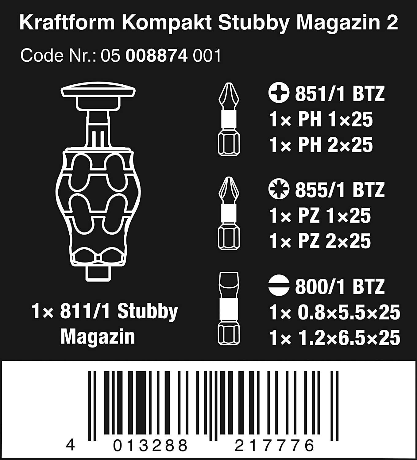 Wera Steckgriff extra kurz mit Bitmagazin Kreuz/ Flach , Kraftform Kompakt Stubby 2