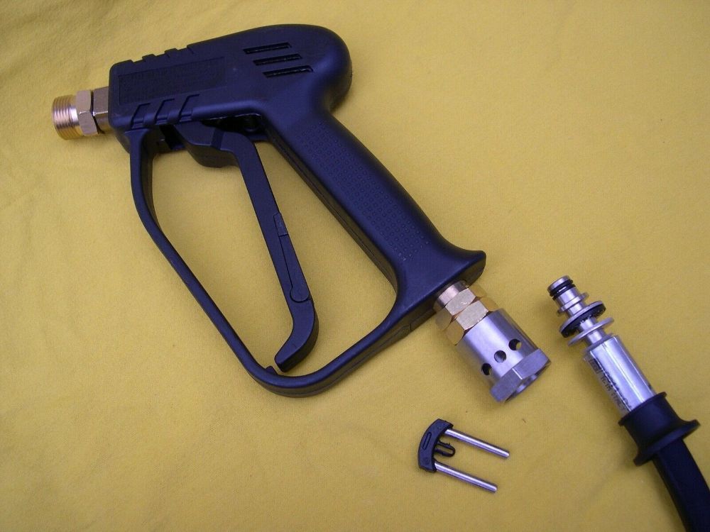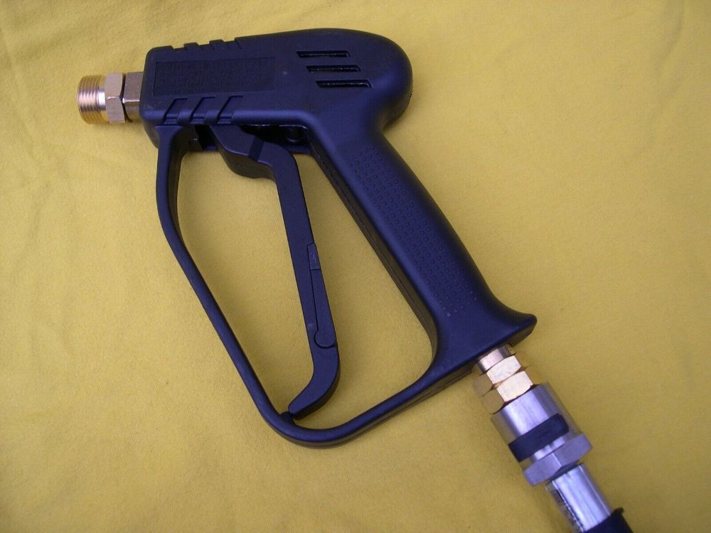 NEUWARE - mit Rechnung Profi - Hochdruckreiniger- Pistole mit Kindersicherung M22 Steckkupplung - 11mm (siehe Foto) - Industrieausführung techn. Daten : - Pistoleneingang : mit Steckkupplung und Sicherungsstift für den Anschluß eines 11m - Stecknippel - Hochdruckschlauches - Pistolenausgang: M22 x1,