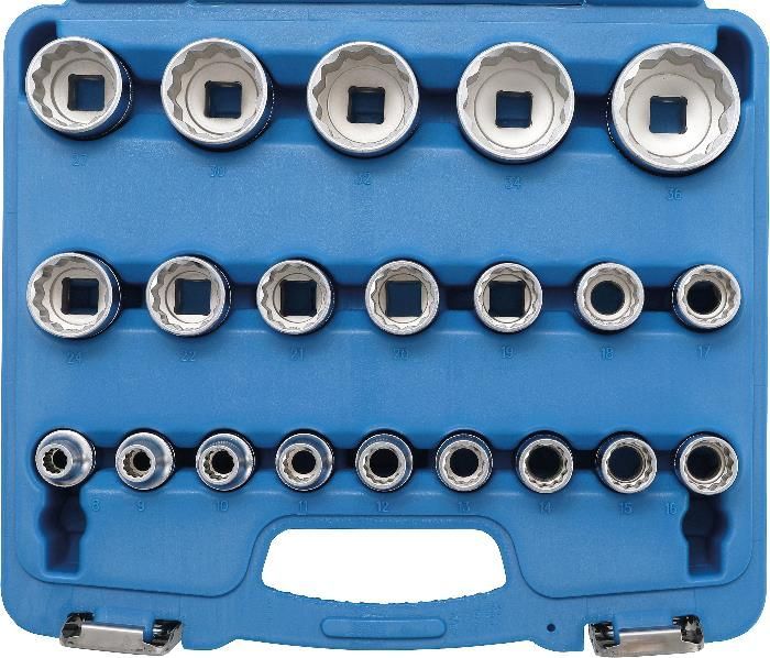 Steckschlüssel-Einsatz-Satz 12-kant 1/2", 8-36 mm, 21-tlg.