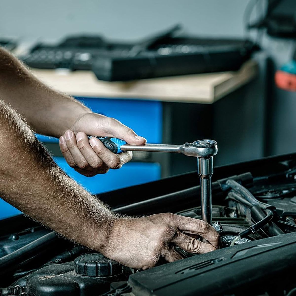 Steckschlüssel-Ratsche 1/2" Umschaltknarre drehbares Schild ergonomischer Griff