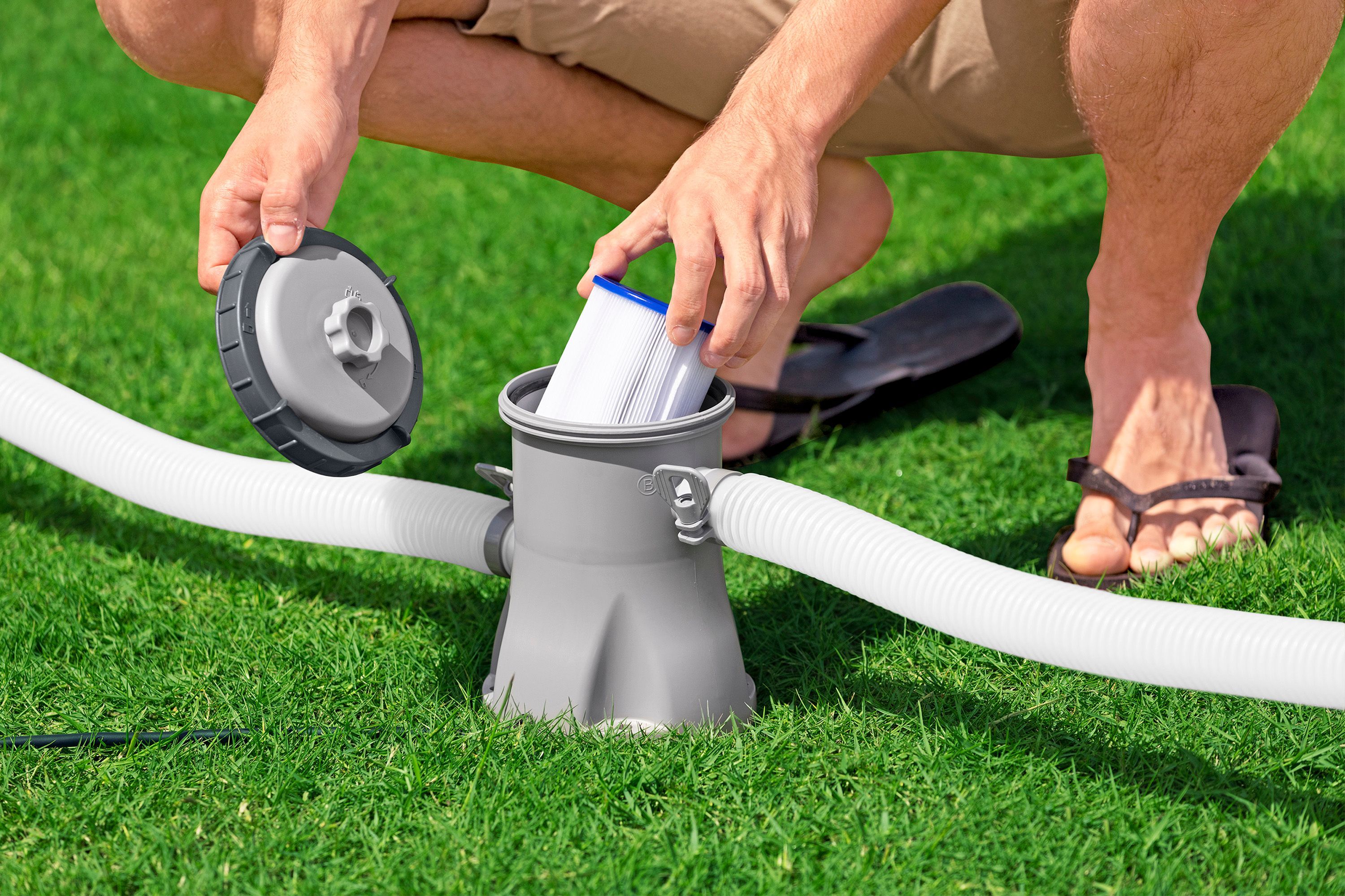 Bestway. Steel Pro® Frame Pool Set mit Filterpumpe Ø 305 x 76 cm, dunkelblau, rund