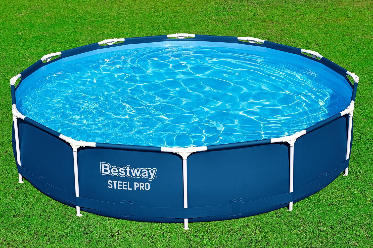 Bestway. Steel Pro™ Frame Pool Set mit Filterpumpe Ø 366 x 76 cm, dunkelblau, rund