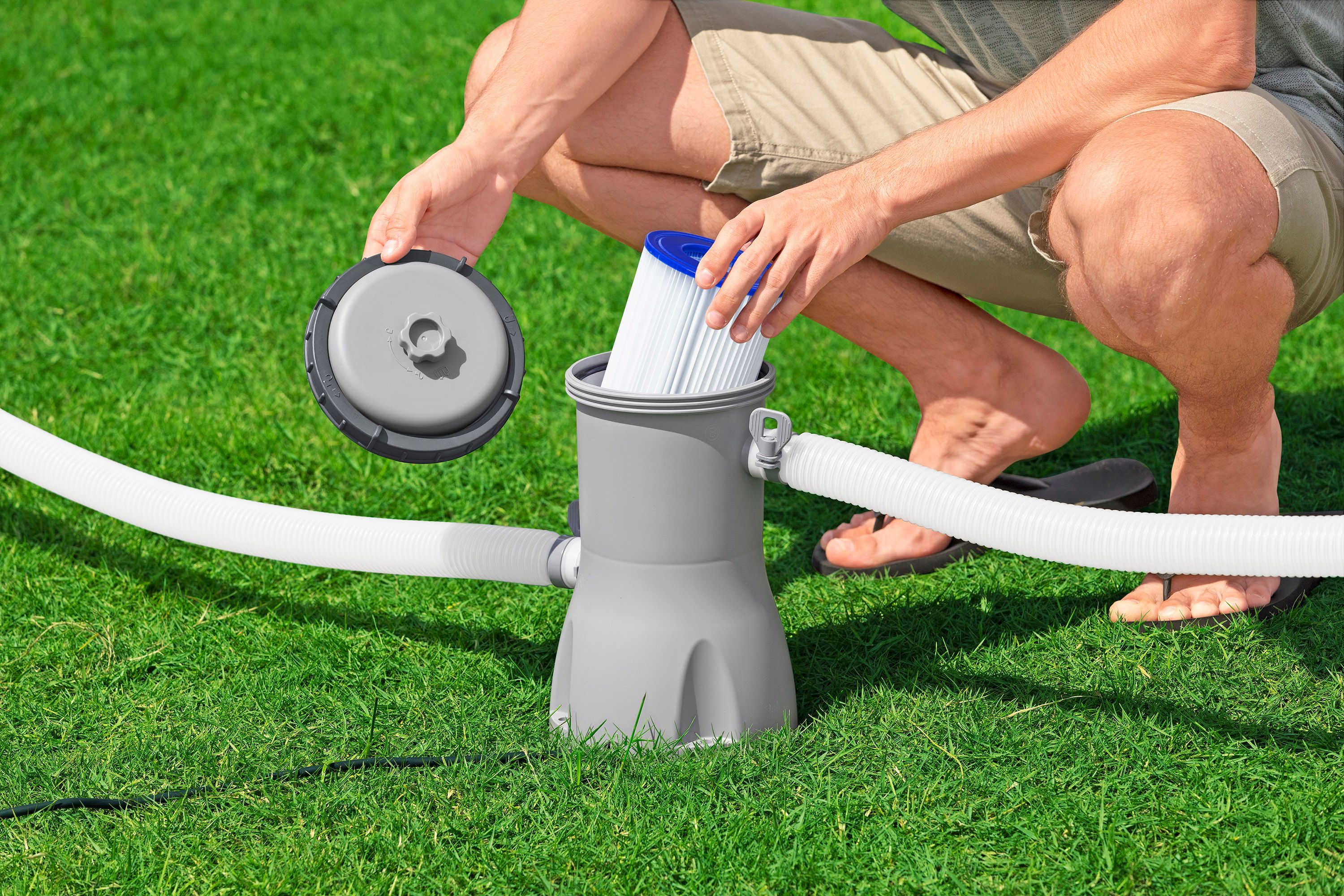 Bestway. Steel Pro MAX™ Frame Pool Komplett-Set mit Filterpumpe Ø 427 x 107 cm, Holz-Optik