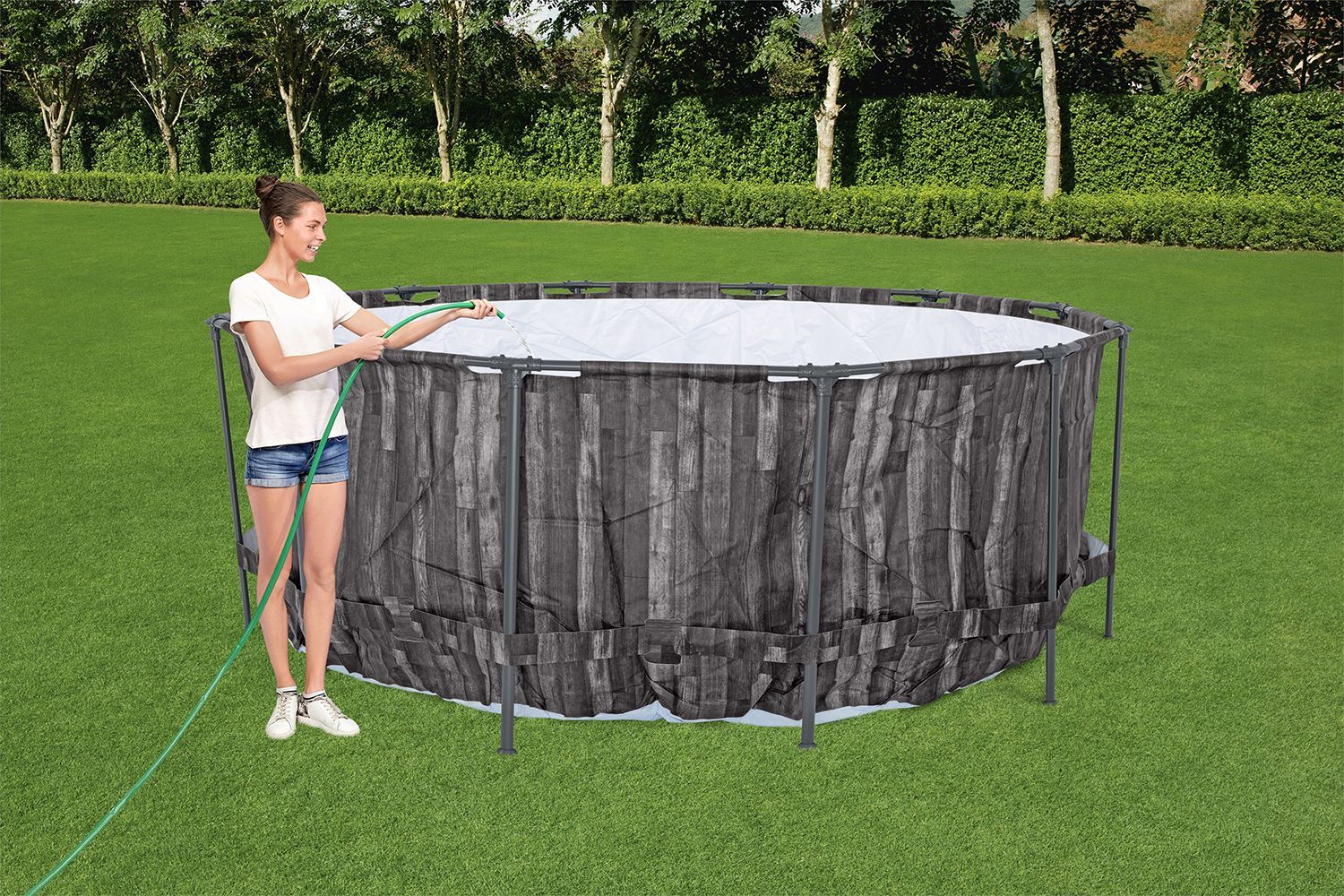 Bestway. Steel Pro MAX™ Frame Pool-Set mit Filterpumpe Ø 366 x 100 cm, Holz-Optik (Mooreich