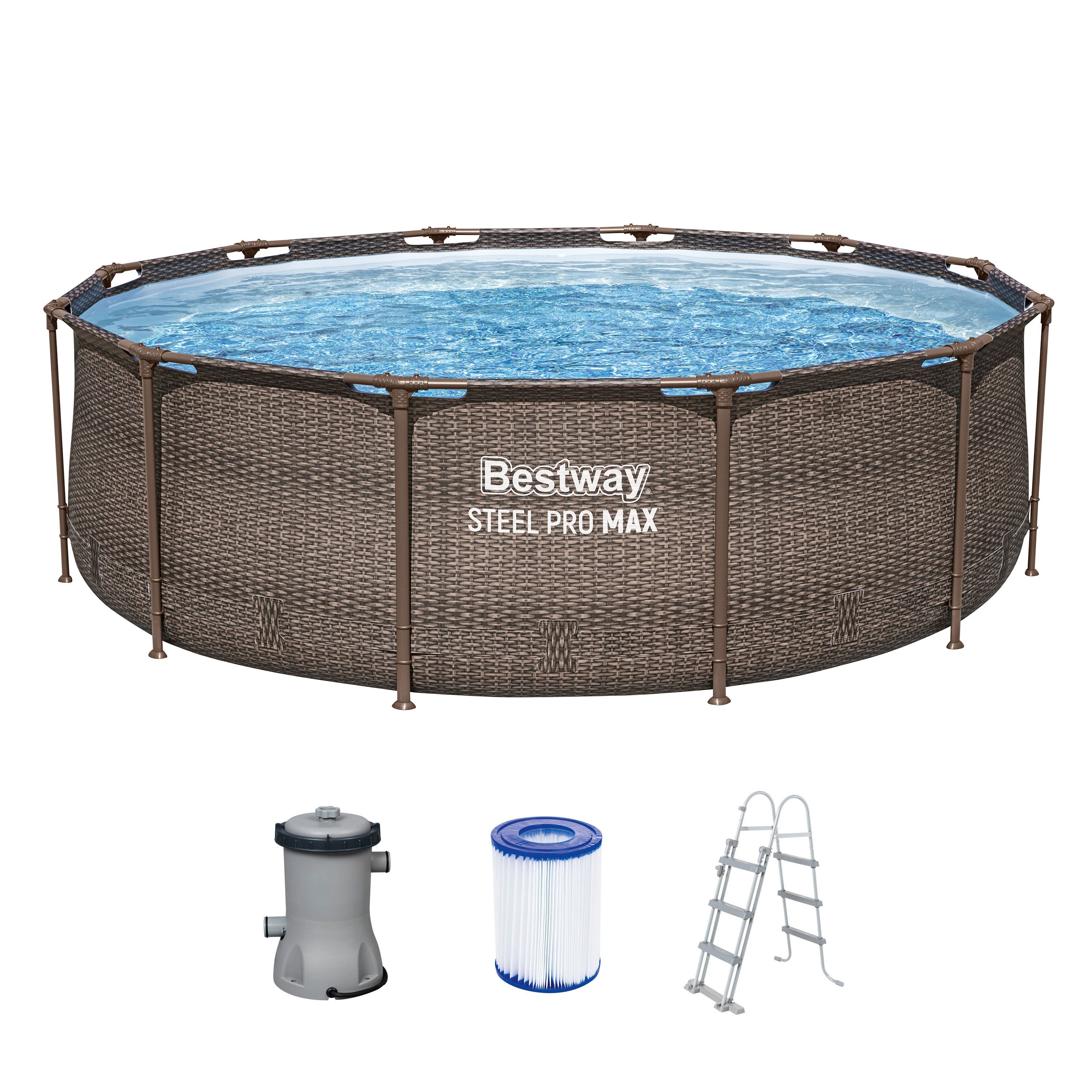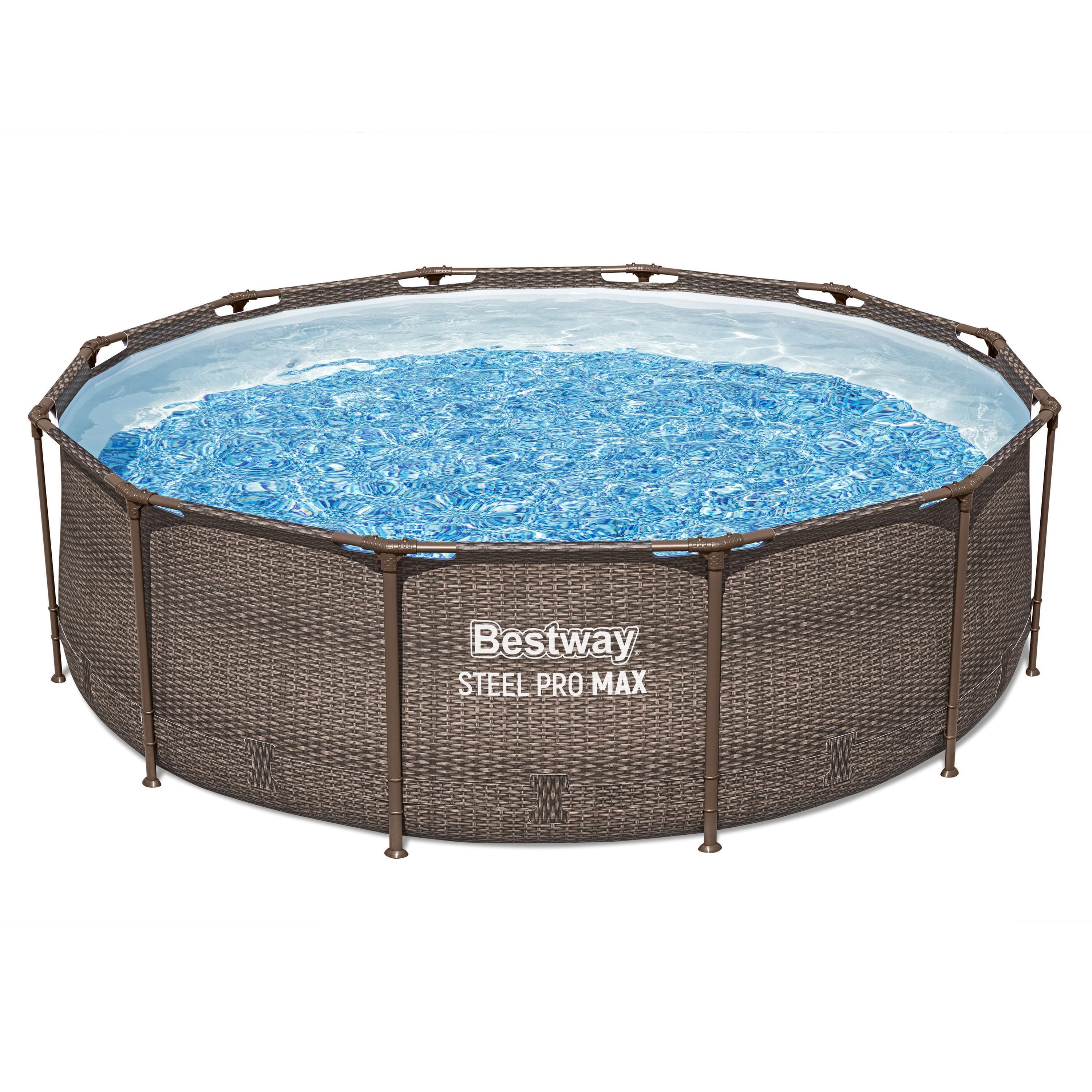 Bestway. Steel Pro MAX™ Frame Pool Set mit Filterpumpe Ø 366 x 100 cm, Rattan-Optik (Schoko