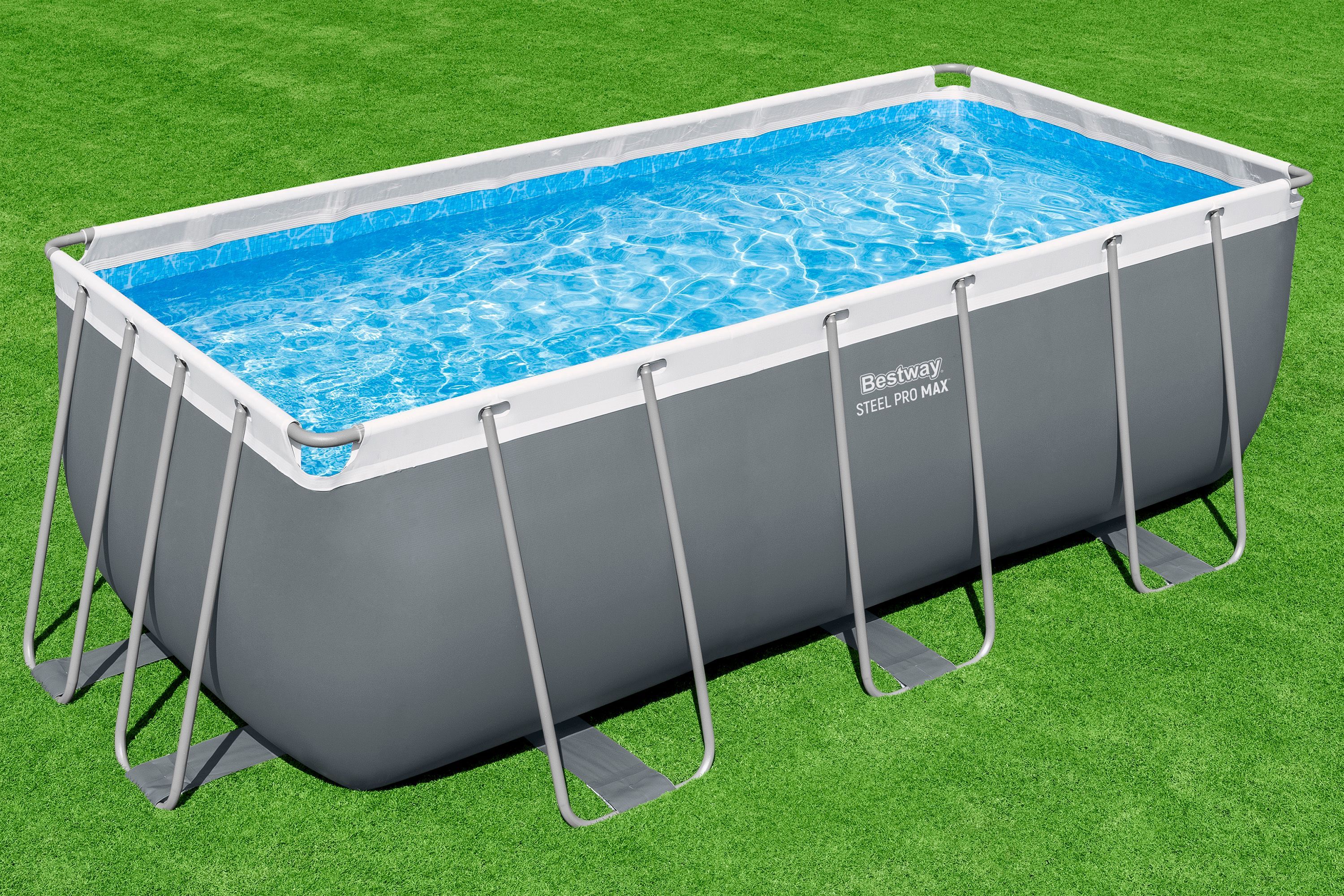 Bestway. Steel Pro MAX™ Frame Pool Set mit Filterpumpe 412 x 201 x 122 cm, grau, eckig