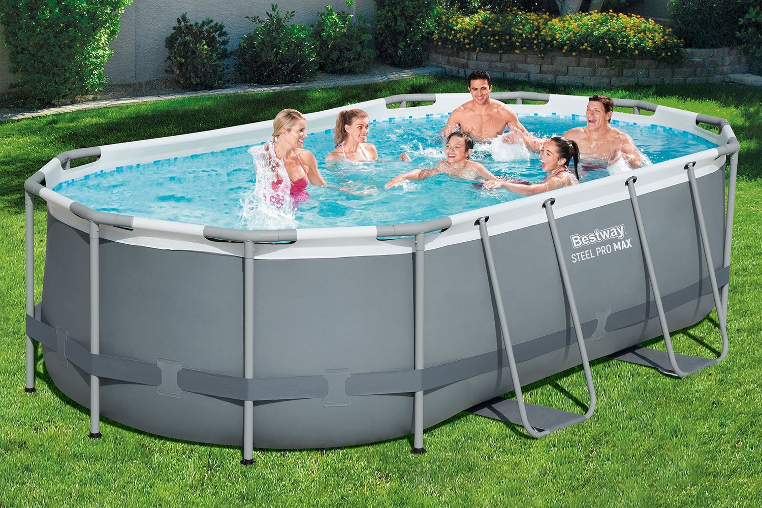 Bestway. Steel Pro MAX™ Frame Pool Set mit Filterpumpe 427 x 250 x 100 cm , grau, oval