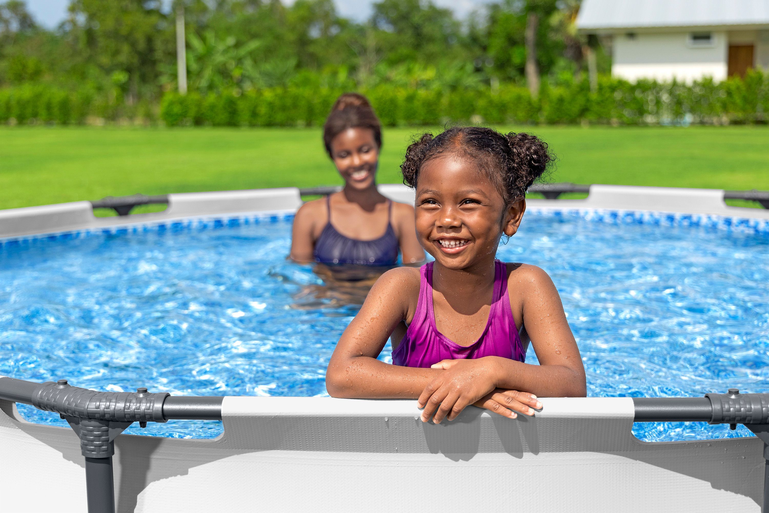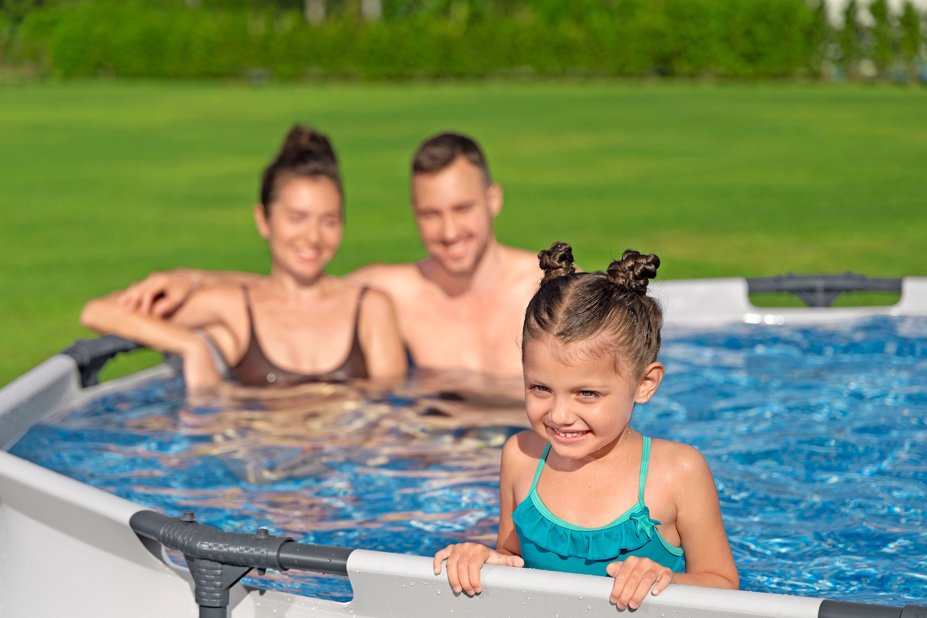 Bestway. Steel Pro MAX™ Frame Pool Set mit Filterpumpe Ø 427 x 84 cm, lichtgrau, rund
